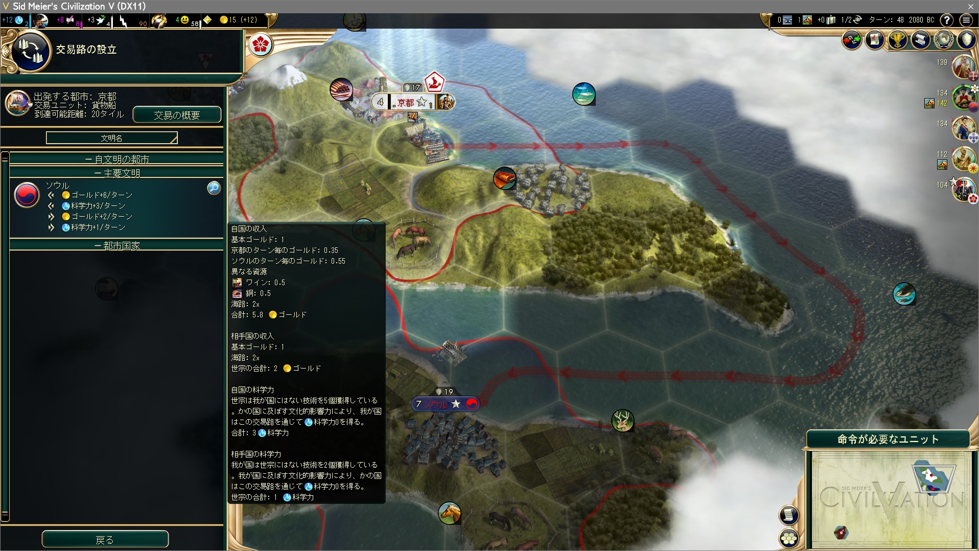 この資源を求める様はまるで第2次世界大戦における大日本帝国のようだ。Civ5では資源を求めて戦争まですることはあまりないのだが。石炭や石油も簡単に輸入できるし。