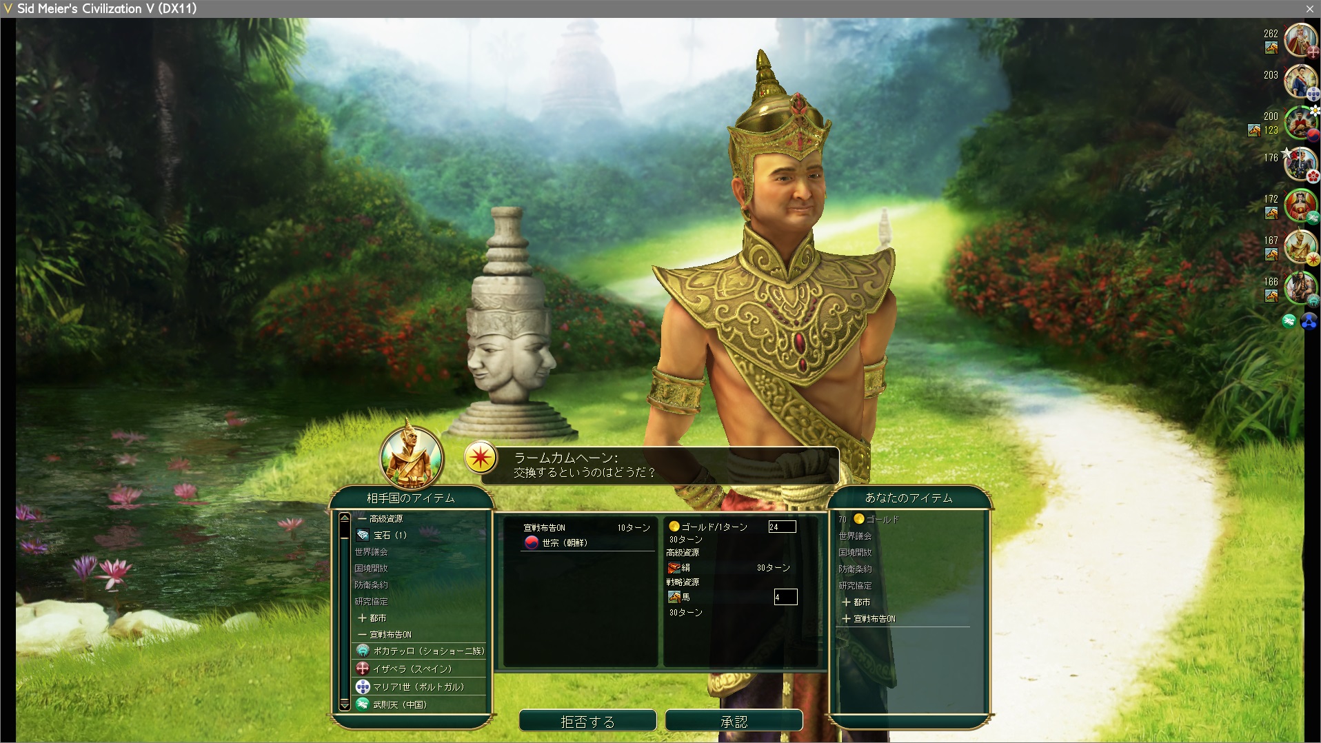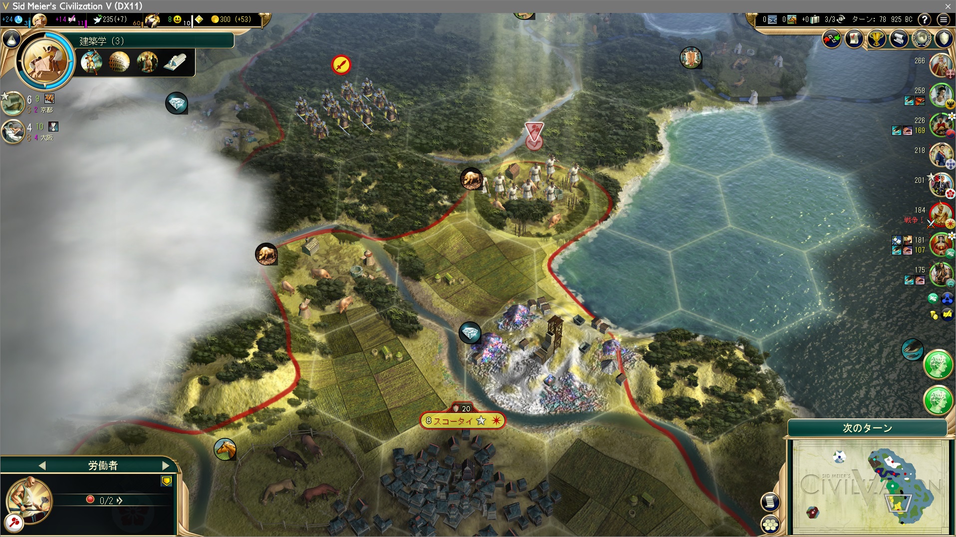 なので光学で海を渡って労働者拉致を行う。犠牲者はシャムおじさん。宣戦布告前に適当な文明に宣戦依頼して、