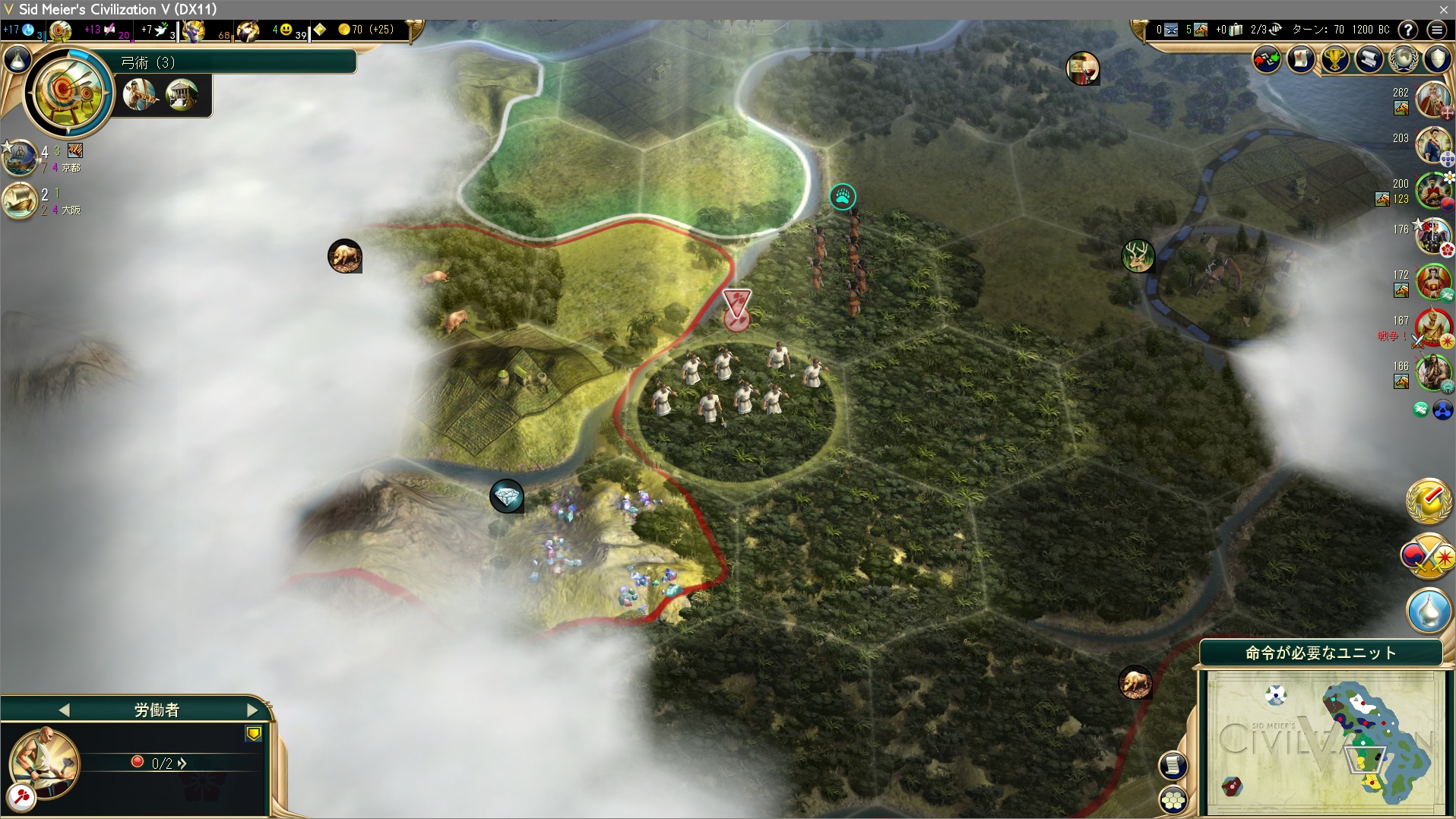 都市国家派のシャムは序盤から嫌がらせをしておくと、後々文化都市国家を奪い合う心配がなくなる。うーんまさに一石二鳥。