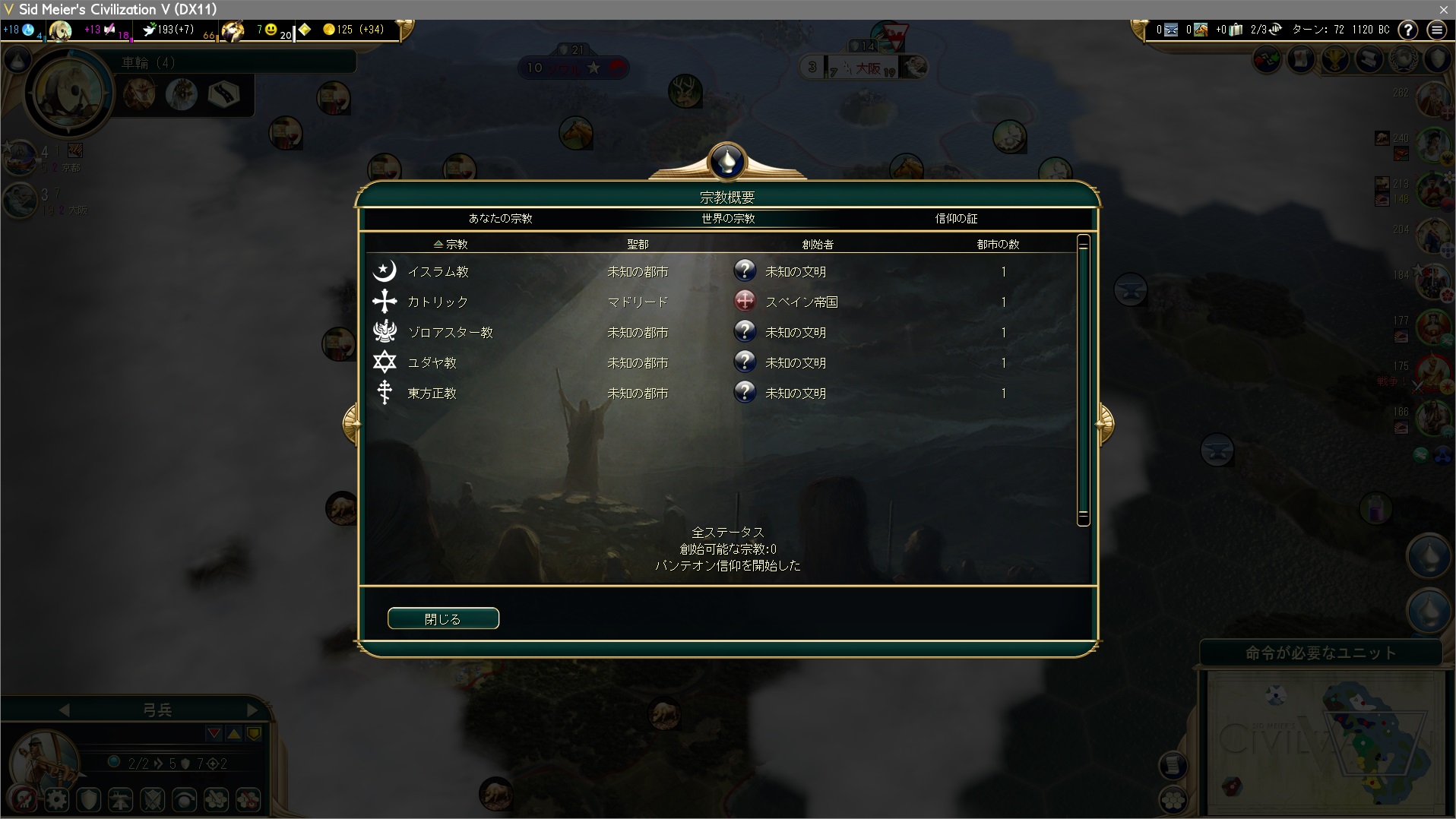 しかも遠方の文明ばかり。これはノー宗教を強いられているな。