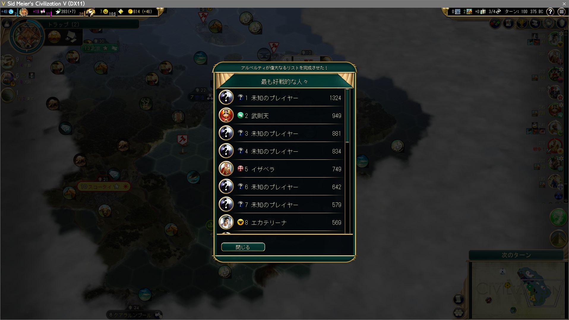 しかし中国の軍事力が2位/22文明なのを知って日和るのであった。やっぱ非戦でぬくり内政こそ最高や!