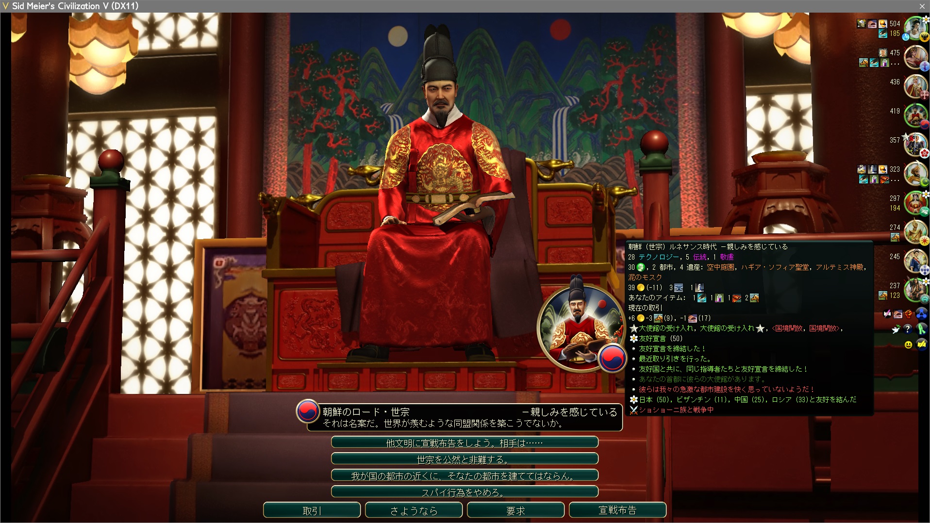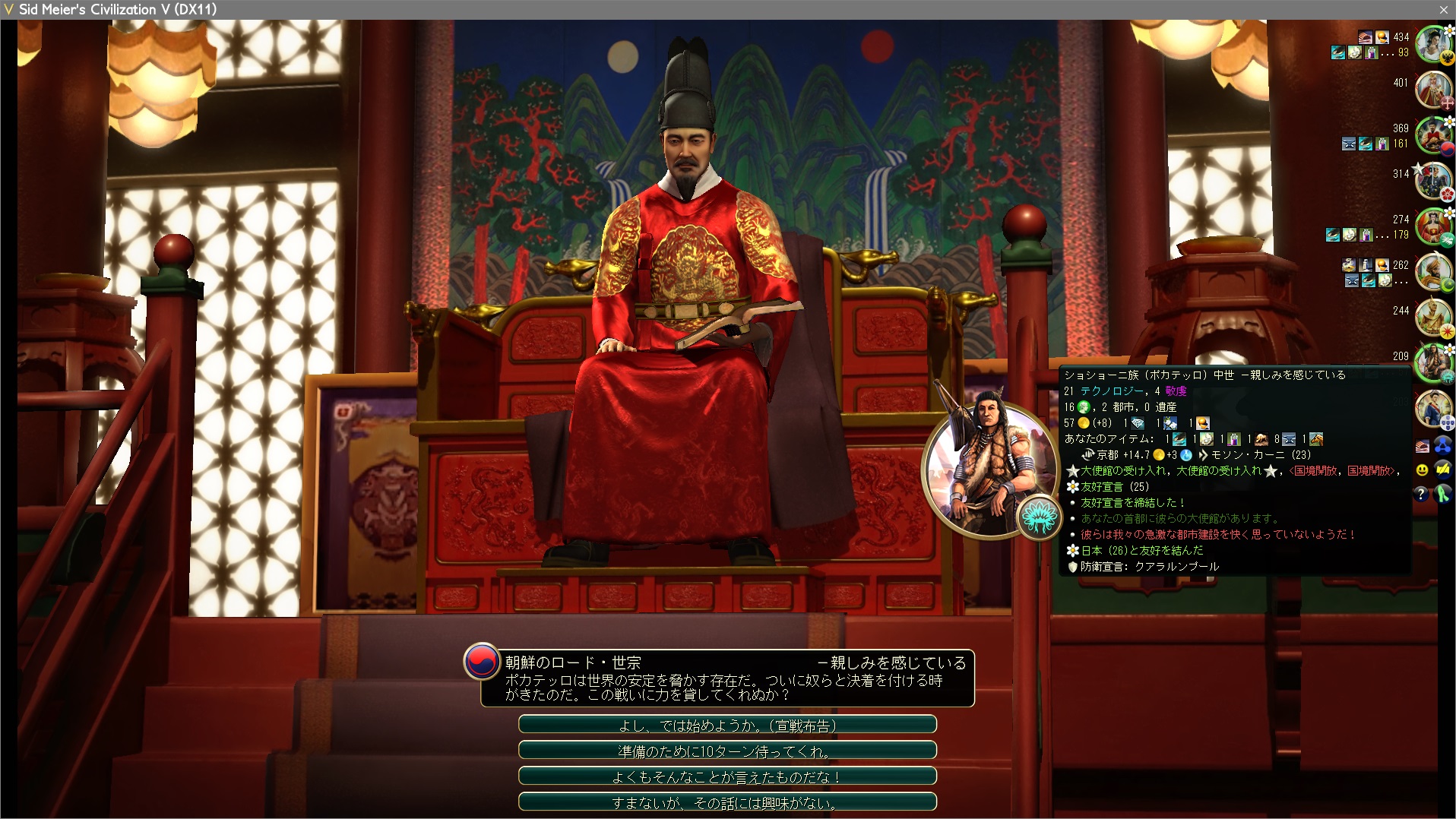 今思えば、んなもん宣戦依頼で済ませて、朝鮮を友好宣言の輪から外すというのもアリだったような…?