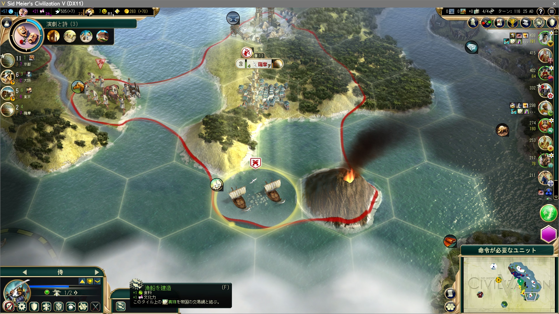 全世界つーかもうほとんど多島海プレイ。伝統コンプ後の社会制度は探検をチョイス。