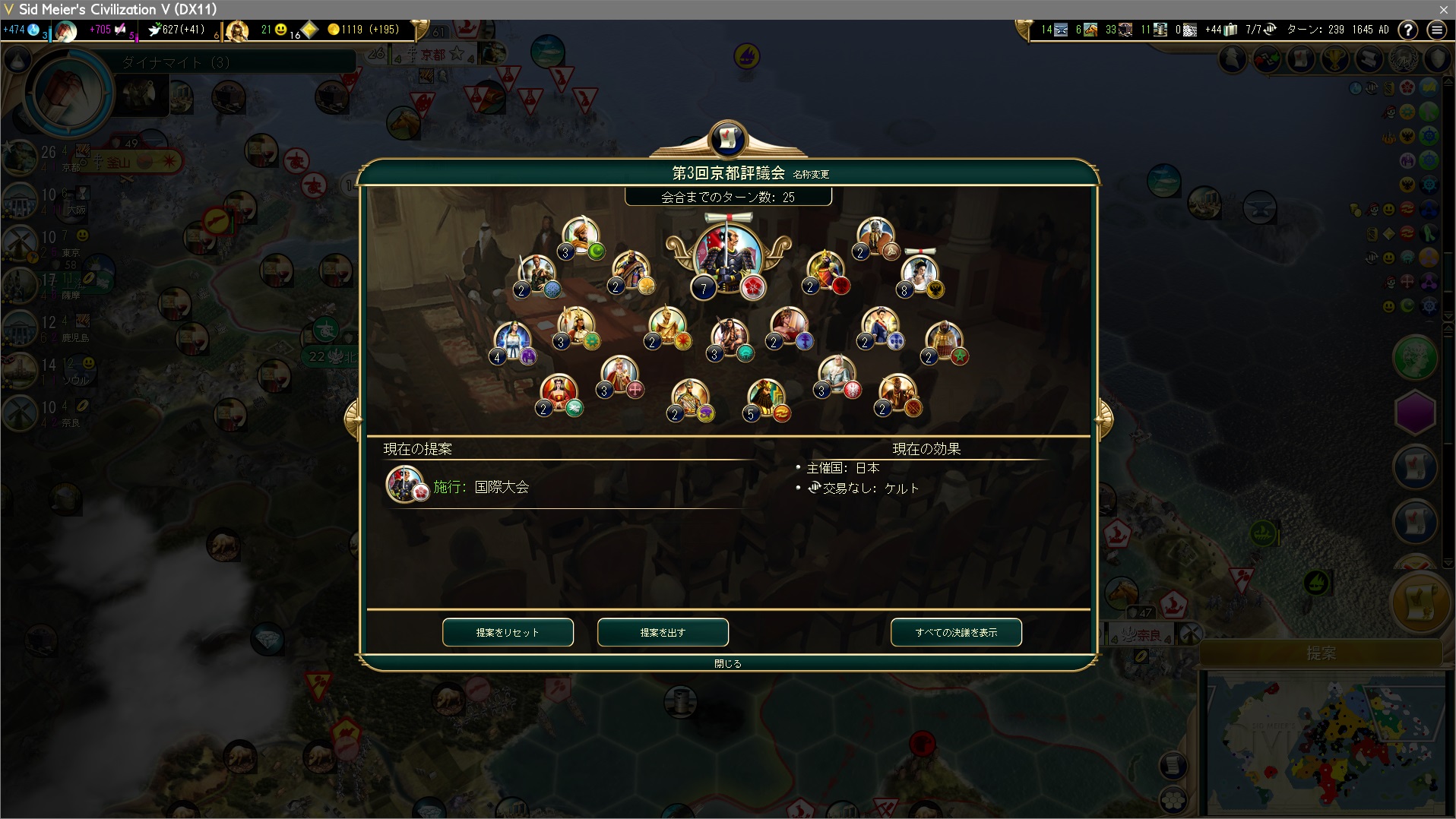 第3回世界議会は国際大会を提出。第1回が180ターンくらいだったから、早めに提出しておかねば。