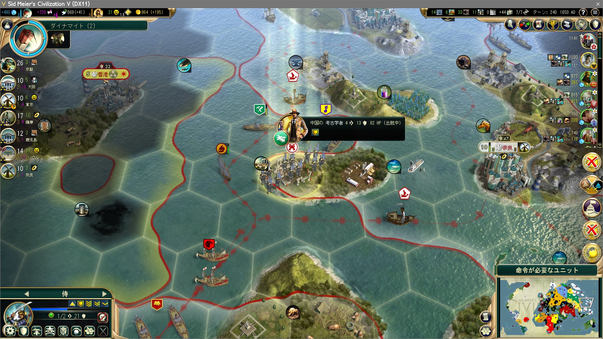 ということで、侍には軍事ユニットらしく、中国の考古学者から史跡を守ってもらっている。