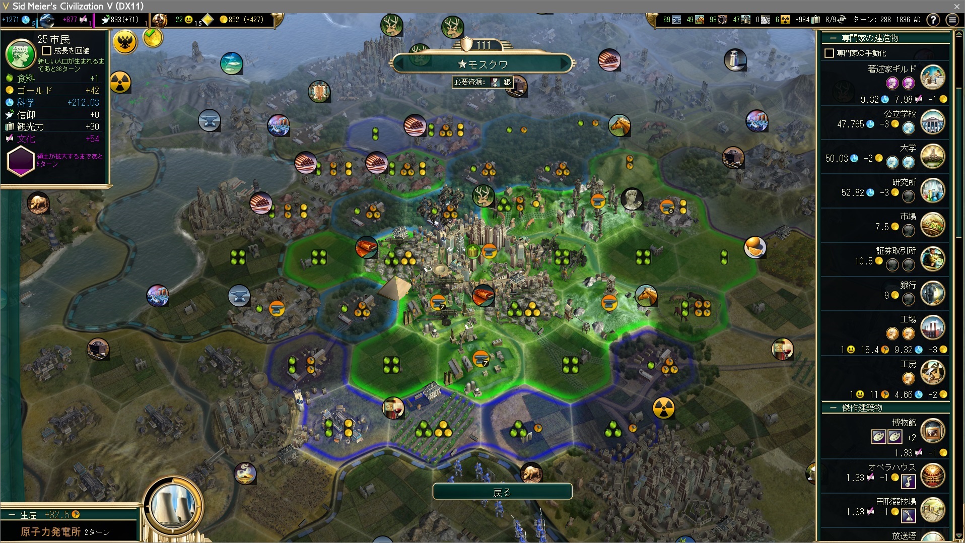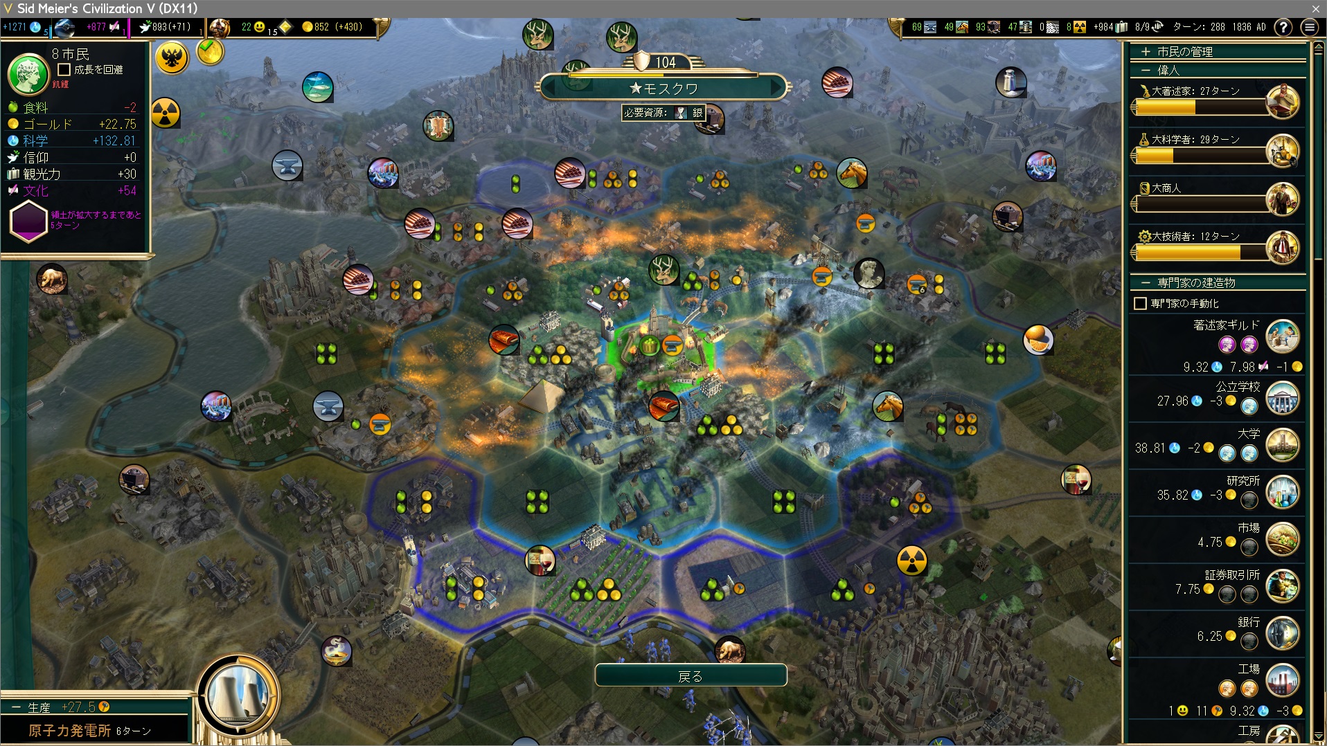 人口8、科学力132、生産27.5に。