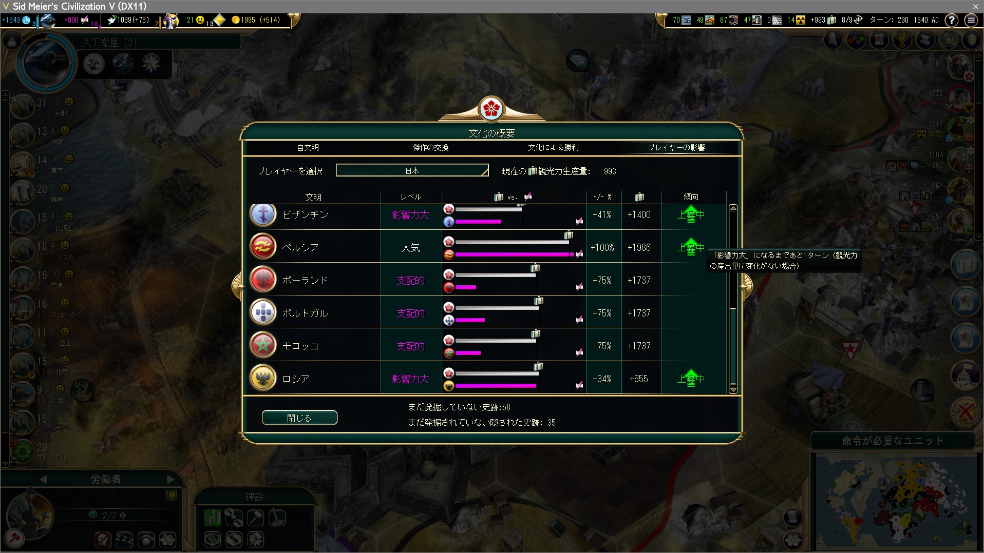 文化勝利まであと1ターン。