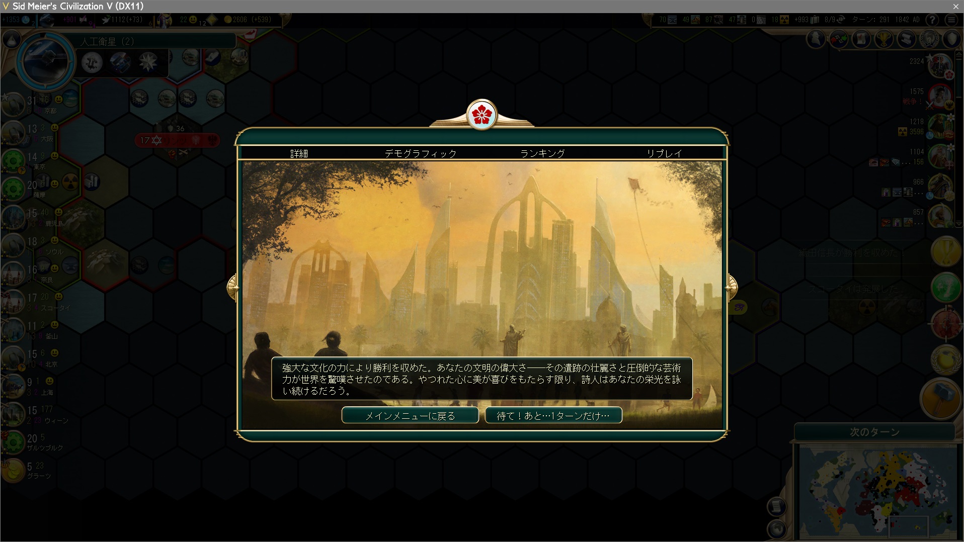 ターン291、文化勝利!