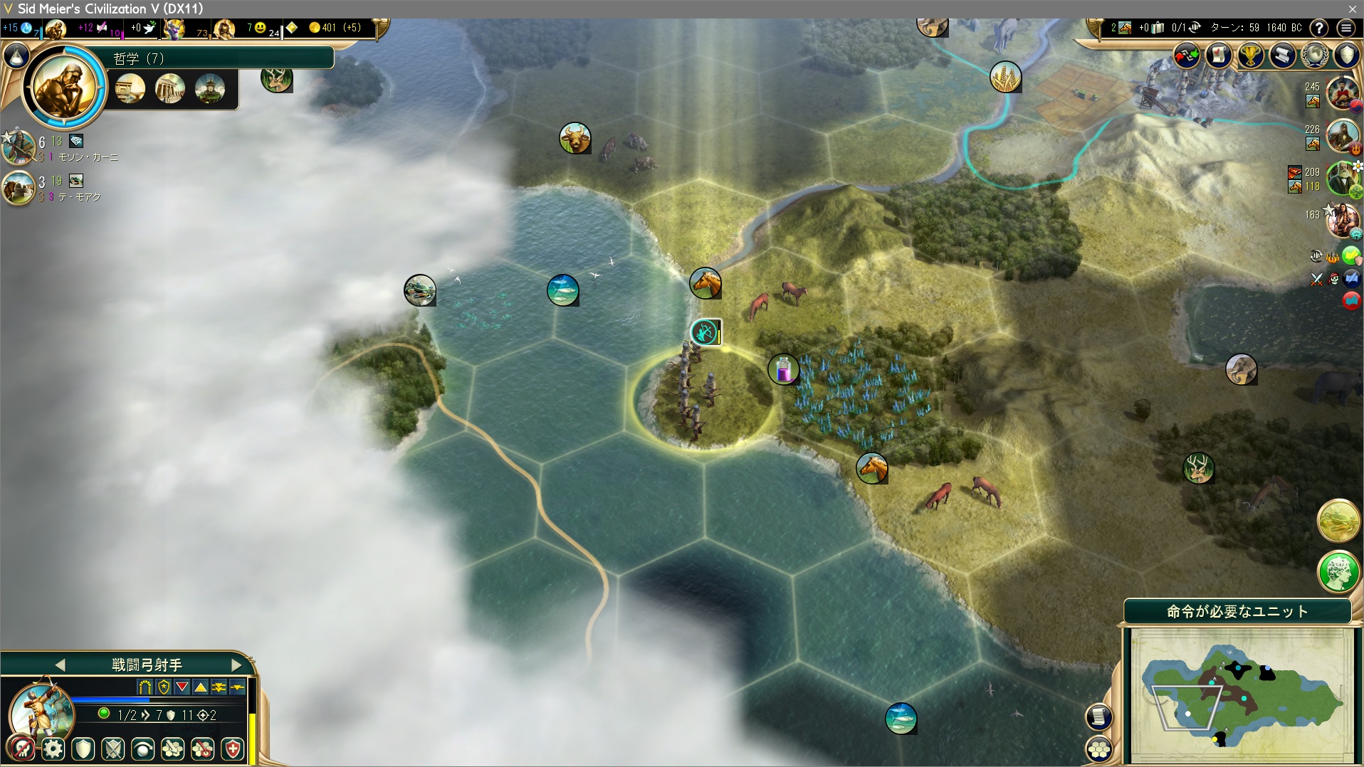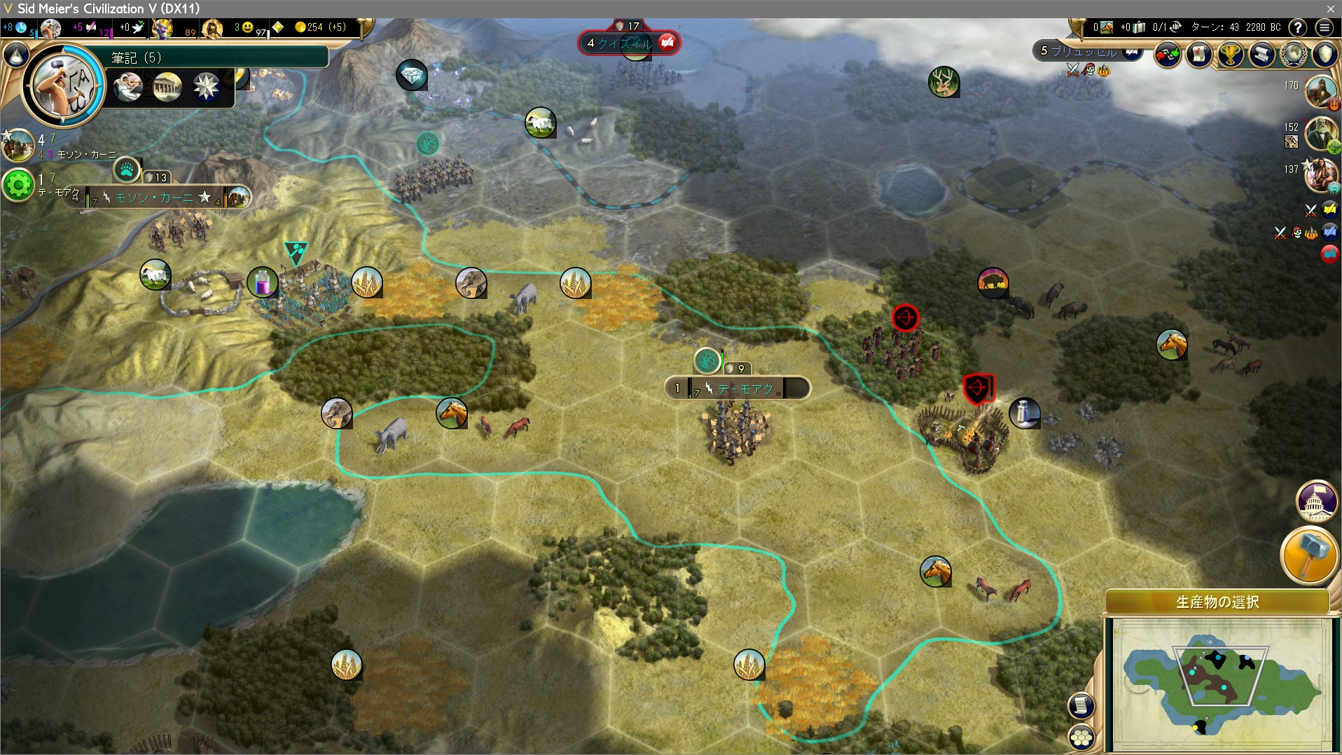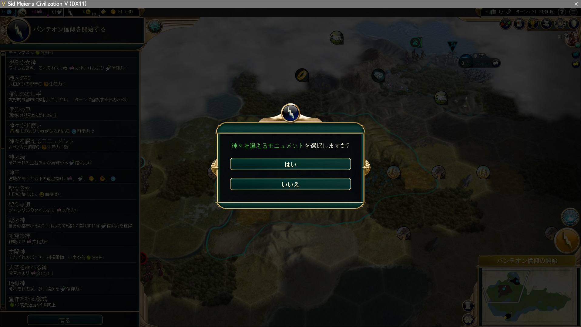 20ターン以降なのでパンテオン開始のボーナスが解禁された。創造主でパンテオンを取れるのは一部の文明に限られる。