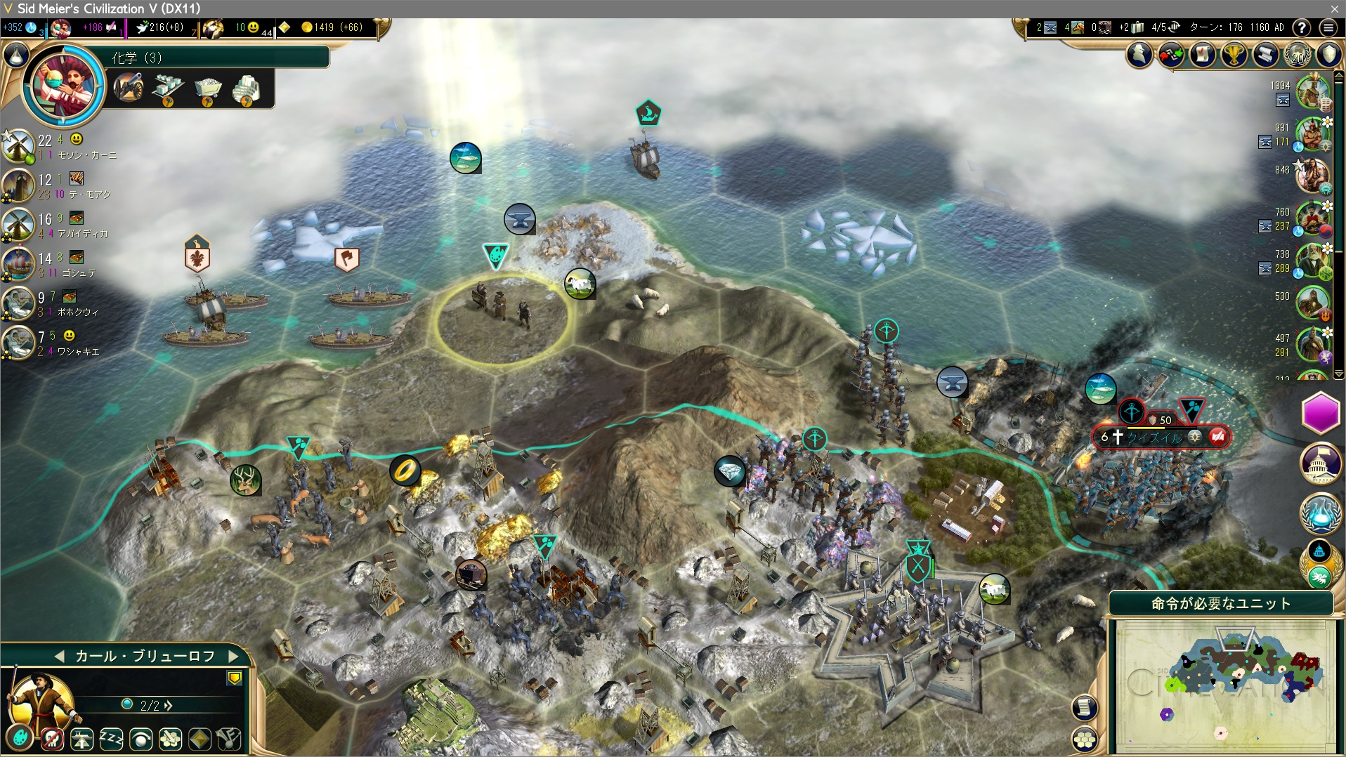 シャカ。中国の首都を陥落させ、お気に入りのピサの斜塔を奪う大暴れっぷり。現在ブラジルと戦争中なので宣戦布告される心配はないが、開拓者がうじゃうじゃやってくるのが面倒。