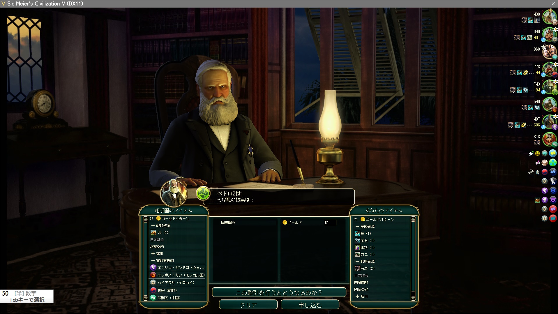 なのでブラジルと国境開放したければゴールドを払うといいだろう。今回はふたりとも自由だったので関係なかったが。