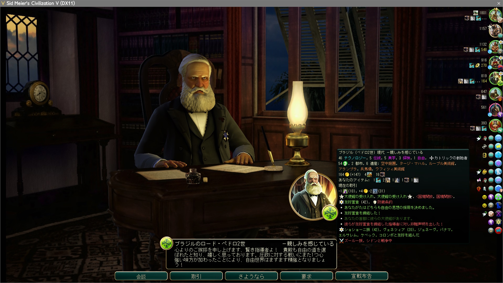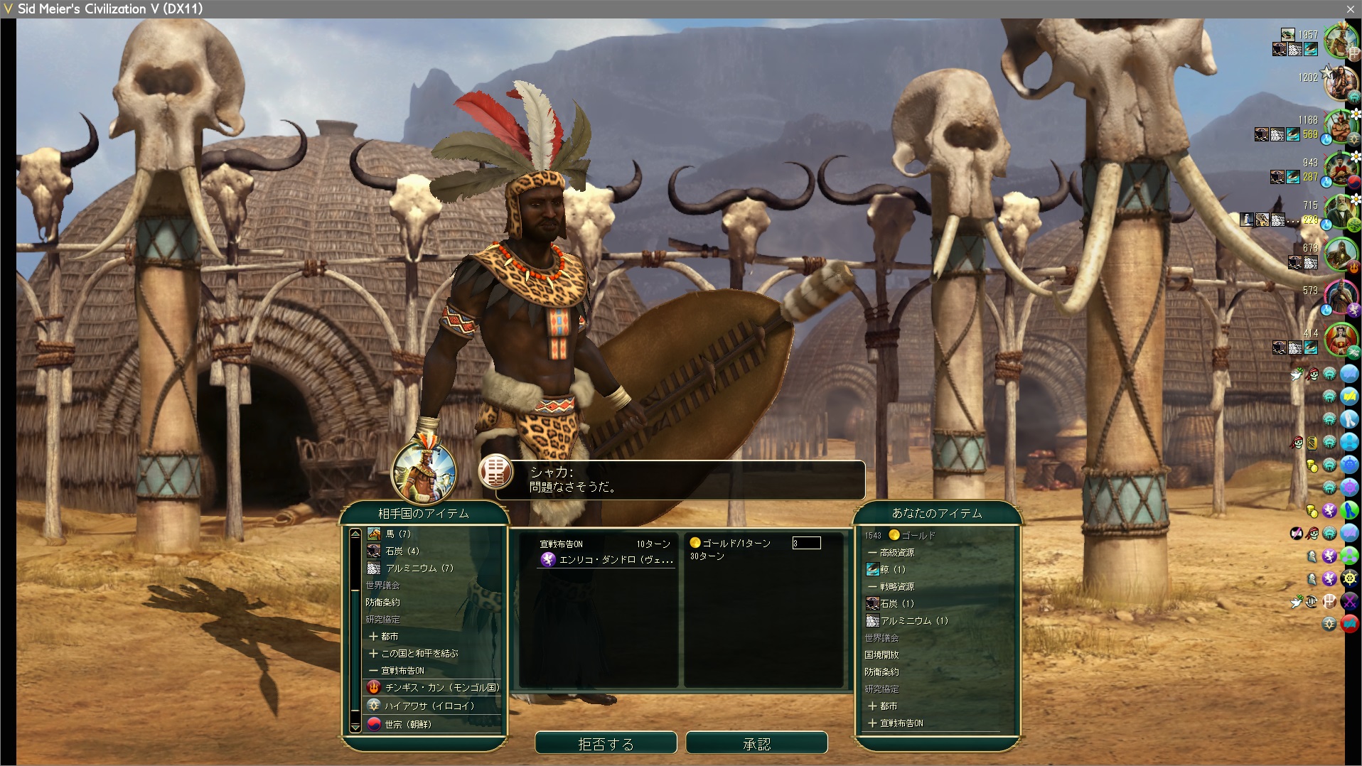 ちょうどサン・パウロがヴェネツィアと接しているので、このタイミングでシャカ→ヴェネツィアの宣戦依頼。たとえヴェネツィアを無視してブラジル首都を襲っても、足止めくらいにはなる。