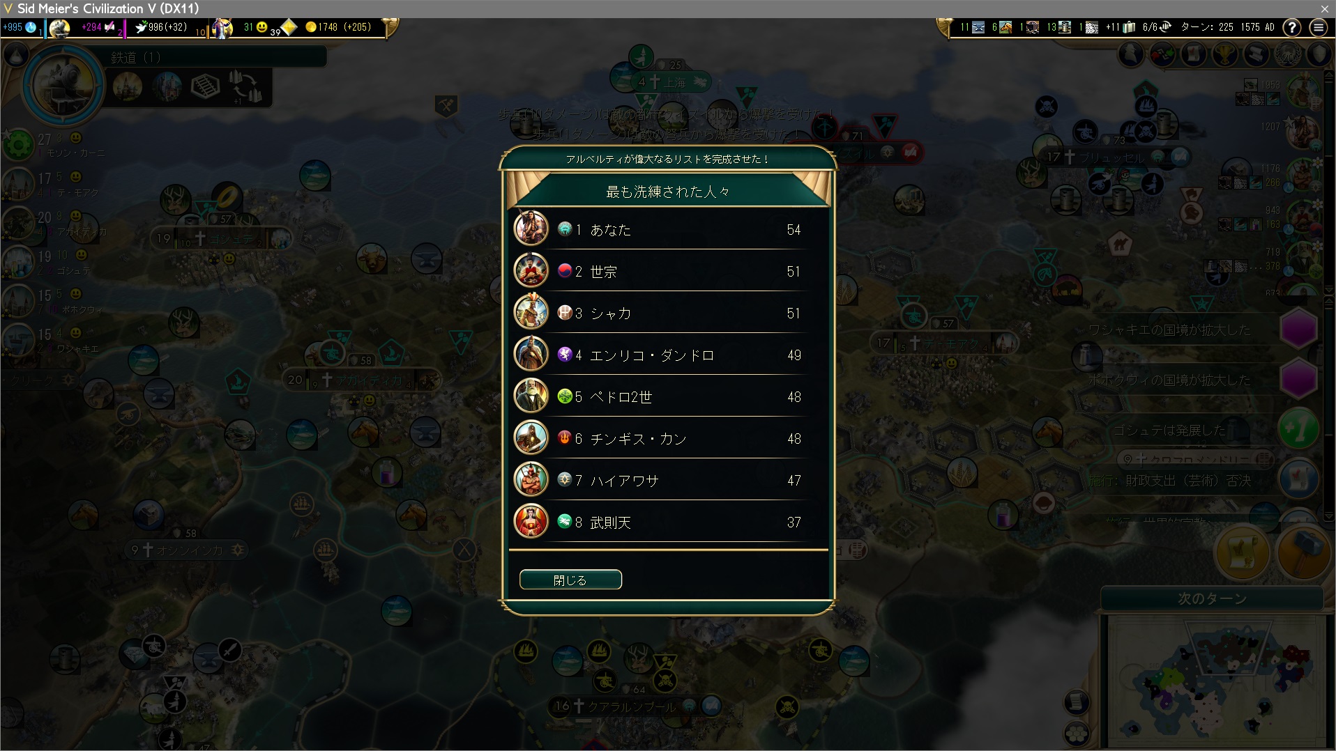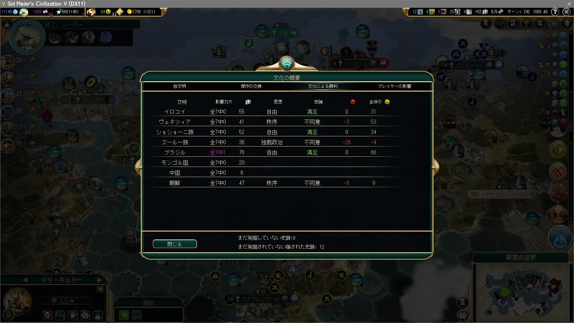 …返す言葉もございません。まあ世界議会の投票ギリギリに情報時代入りできたから、勝利ターンは変わらないんだが。