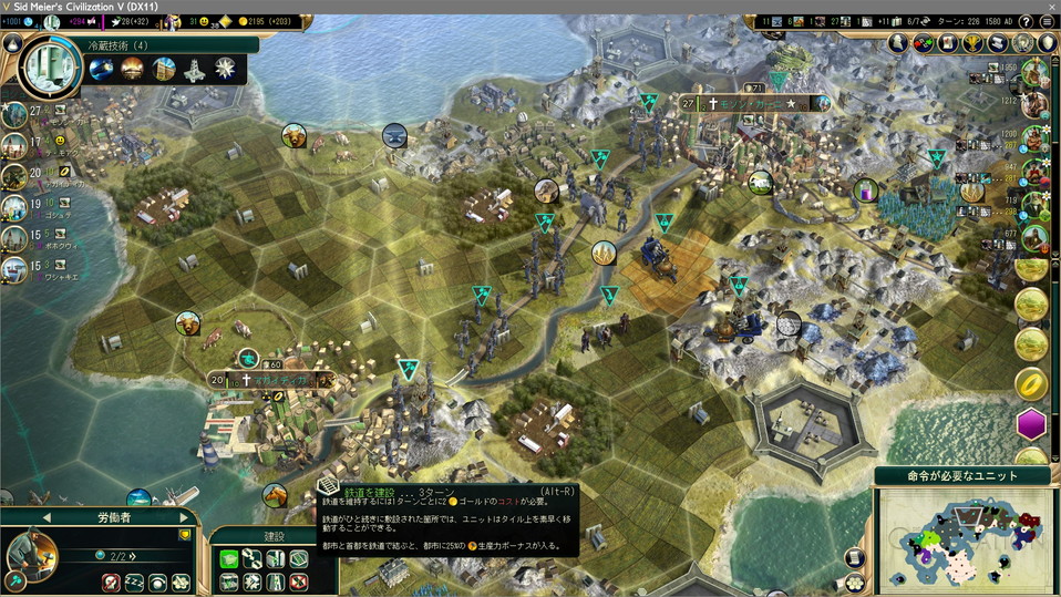 フラクタルでは港のある沿岸都市も多いだろう。首都と港のある沿岸都市一つを鉄道で繋ぐだけで、全ての港のある都市に鉄道結合ボーナス!ただし戦争の予定があるのであれば、万が一の海上封鎖に備えて鉄道を整えておくのもいい。