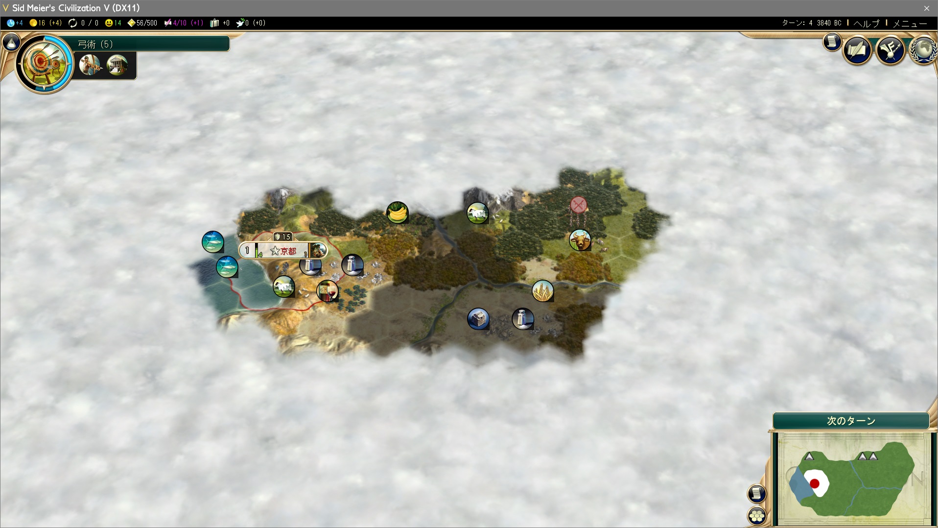 開拓者で首都:京都を建設!狩猟民族が農業を知ることで農耕民族となり、定住を始めたわけだな。