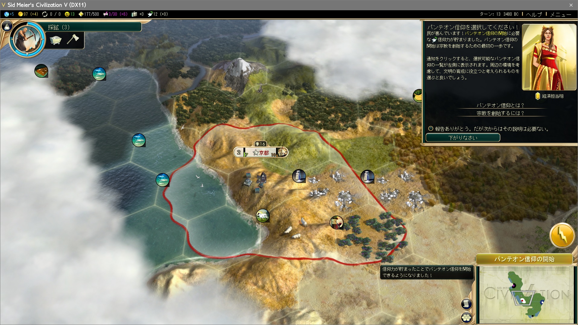 2つの宗教系都市国家と遭遇し、信仰力が必要な分貯まったので…