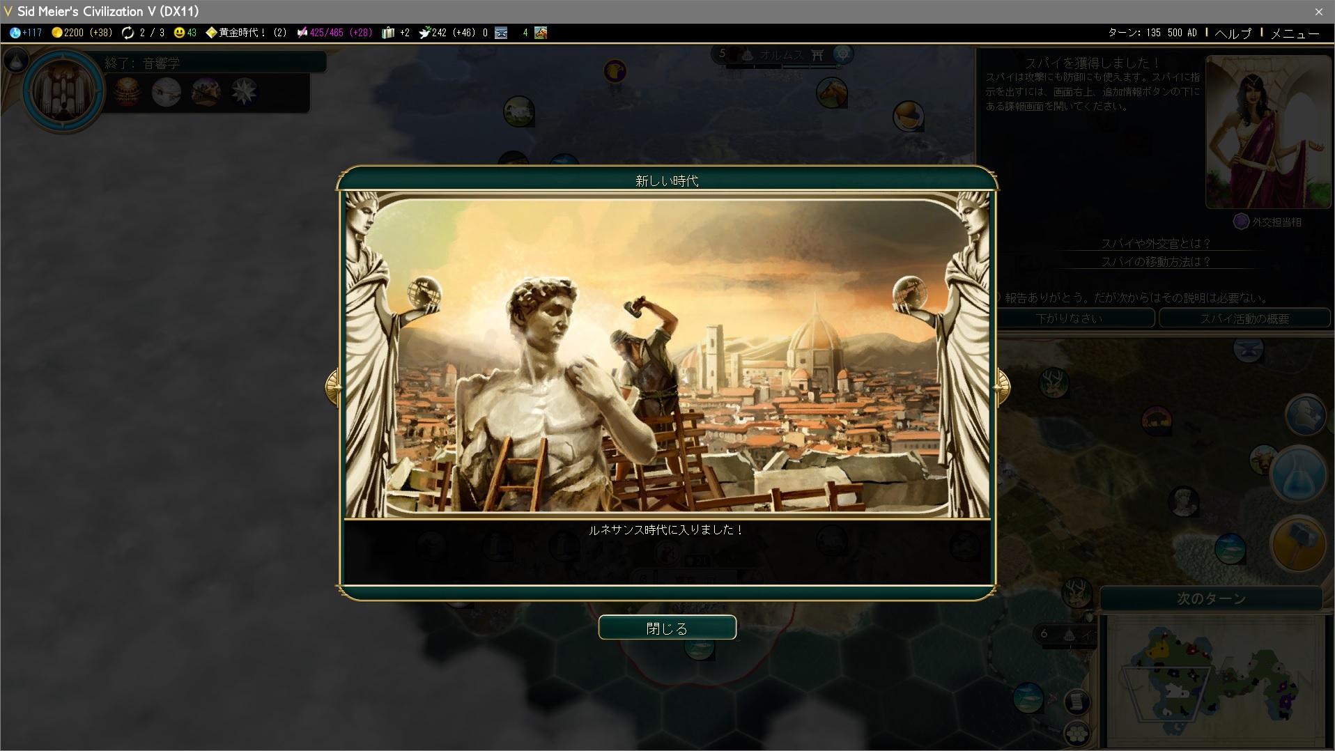 ルネサンス時代に突入すると全文明にスパイが1人与えられる。スパイを使うには…