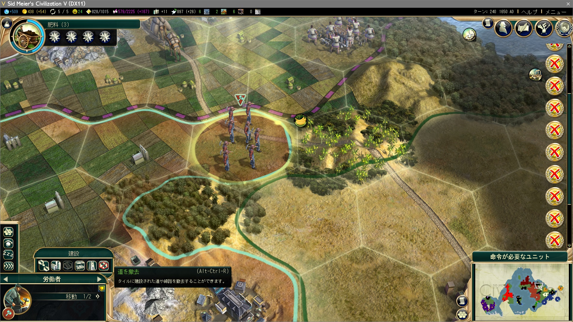 基本的に道路の維持費は道路を引いた文明が支払うのだが、自文化圏内の道路の維持費は自分もち。これは戦争で獲得した道路なんかにも言える。
