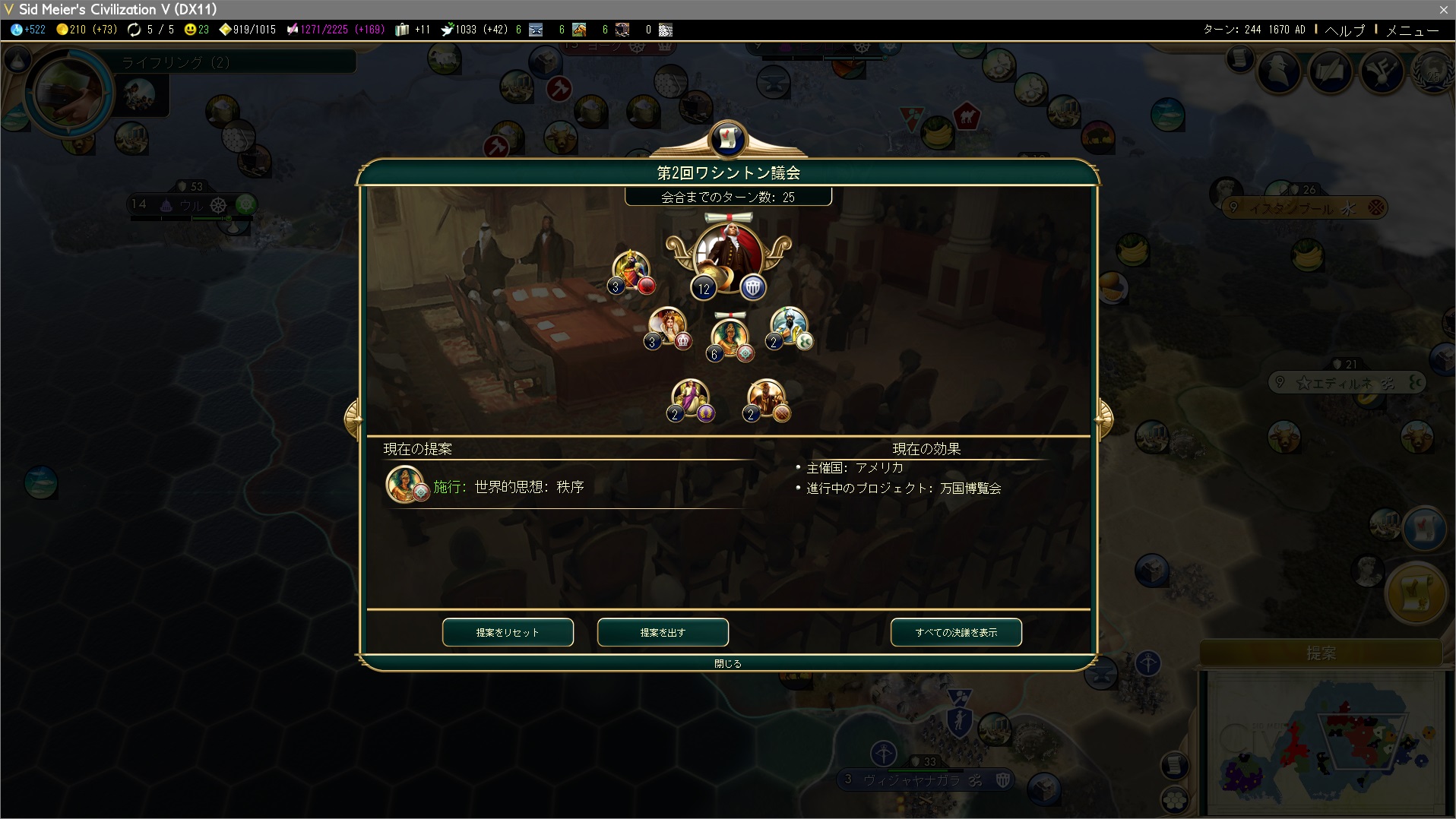 世界的思想:秩序も可決!だがアメリカが提出した国際大会も可決…国際大会は第三回or第四回に提出するのがちょうどいいタイミングなんだけどなあ…