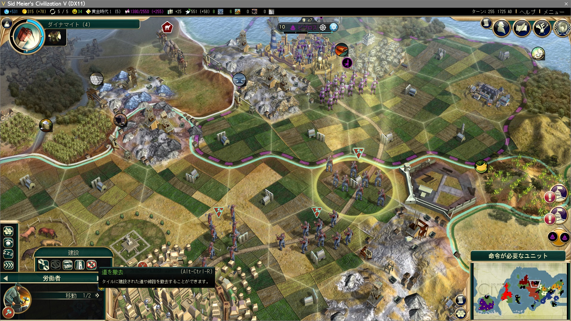 近場の都市国家から「都市に道路を引いてくれ」といったクエストが発生することがある。労働者の数が足りていなければ少し面倒ではあるが、これほどラクな条件もない。