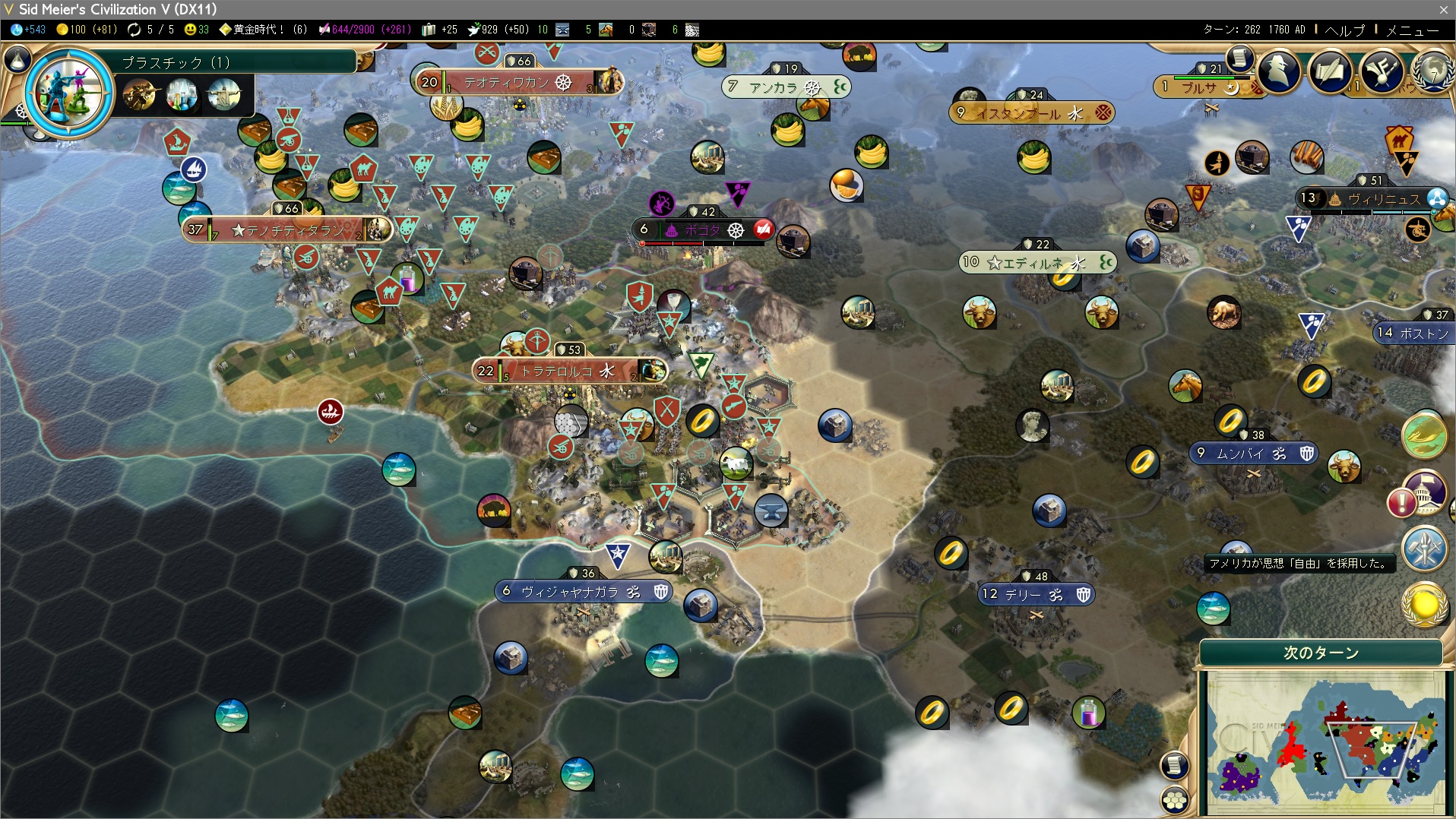 ということでしばらく待つことに。万国博覧会金賞のための宣戦依頼でアメリカと戦争していた文明が和平したので、和平条約(10ターン)が切れるのを待つ必要があるのでまあ好都合ではある。