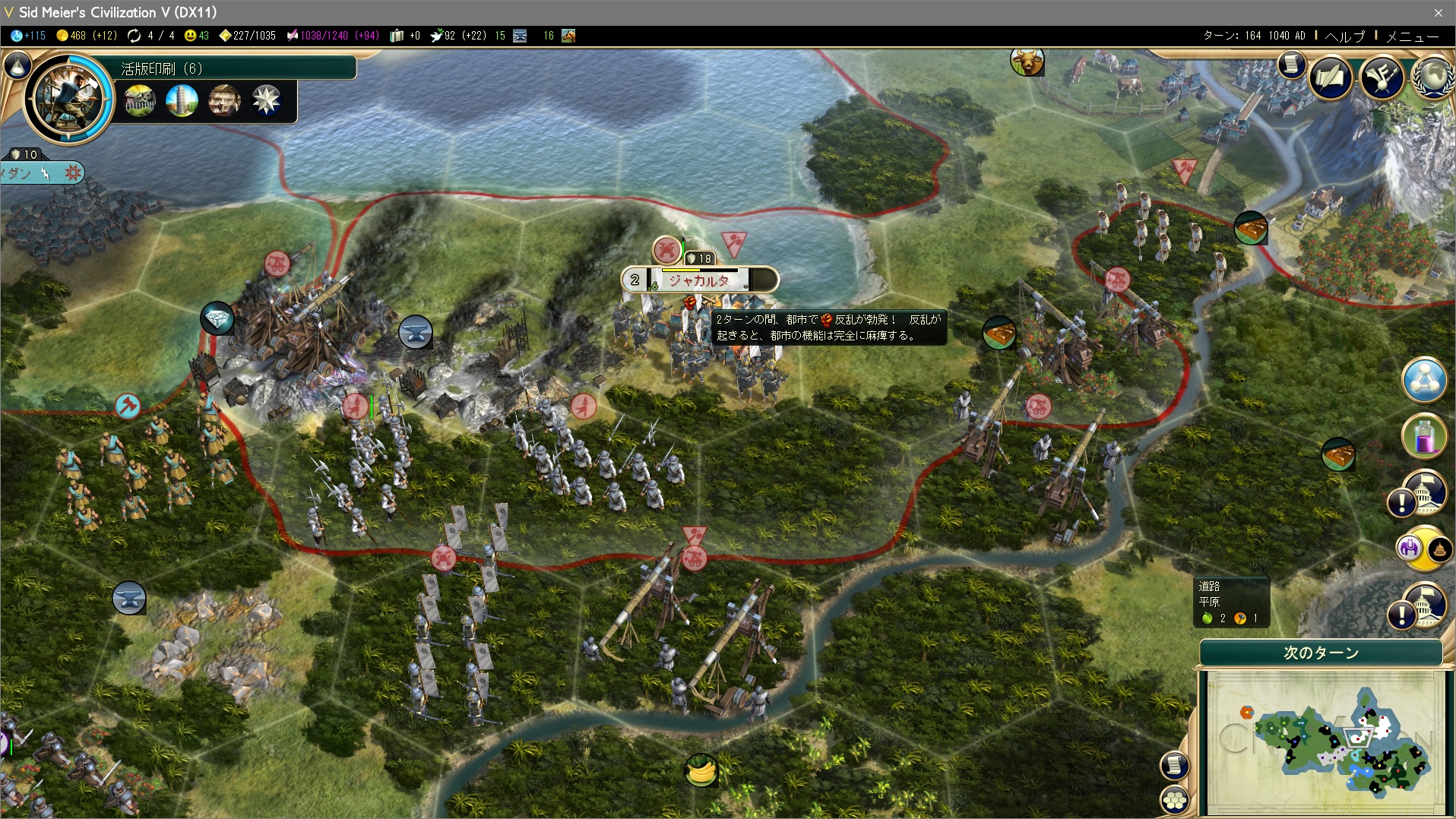 社会制度獲得と同時に、ジャカルタを併合。うわー裁判所建てるまでが遠い…やっぱゲーム序盤の戦争ってクソだわ。