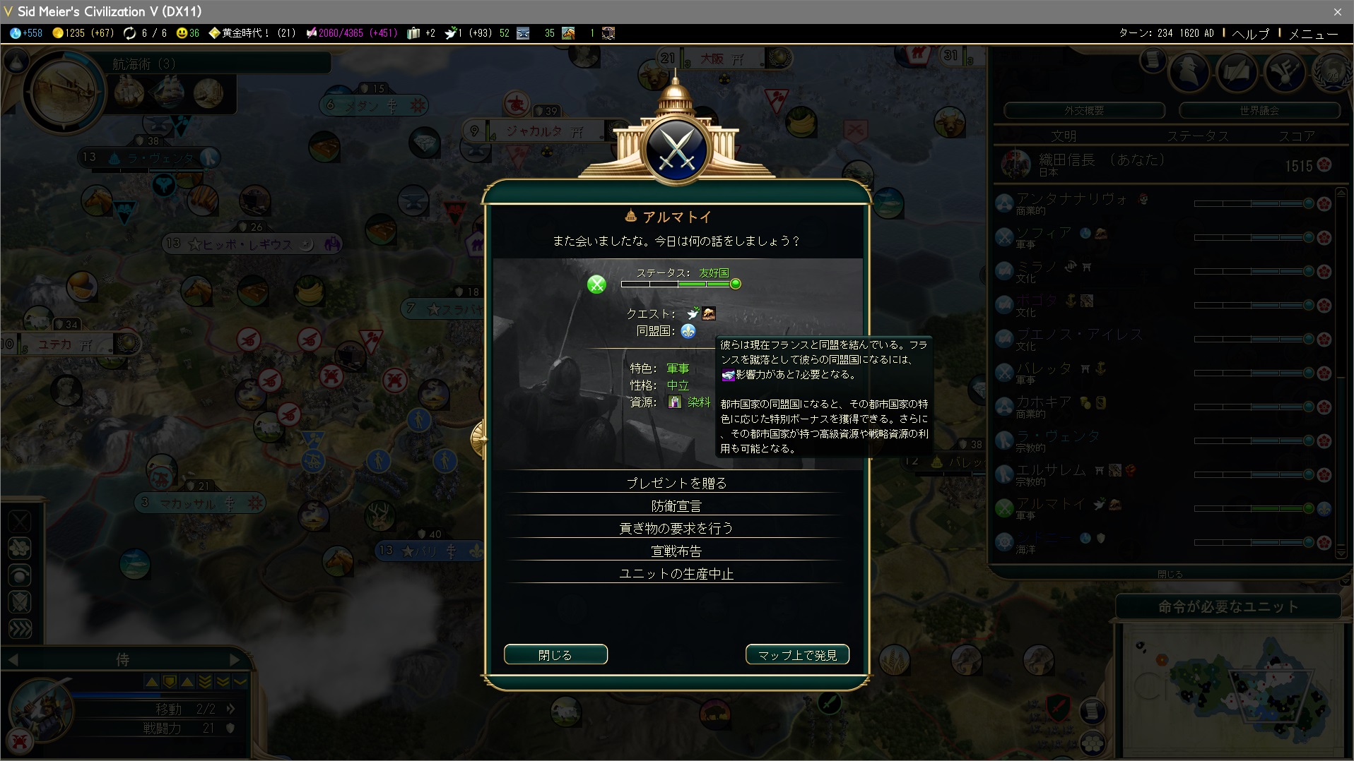 敵の同盟都市国家はゴールドで調略して…