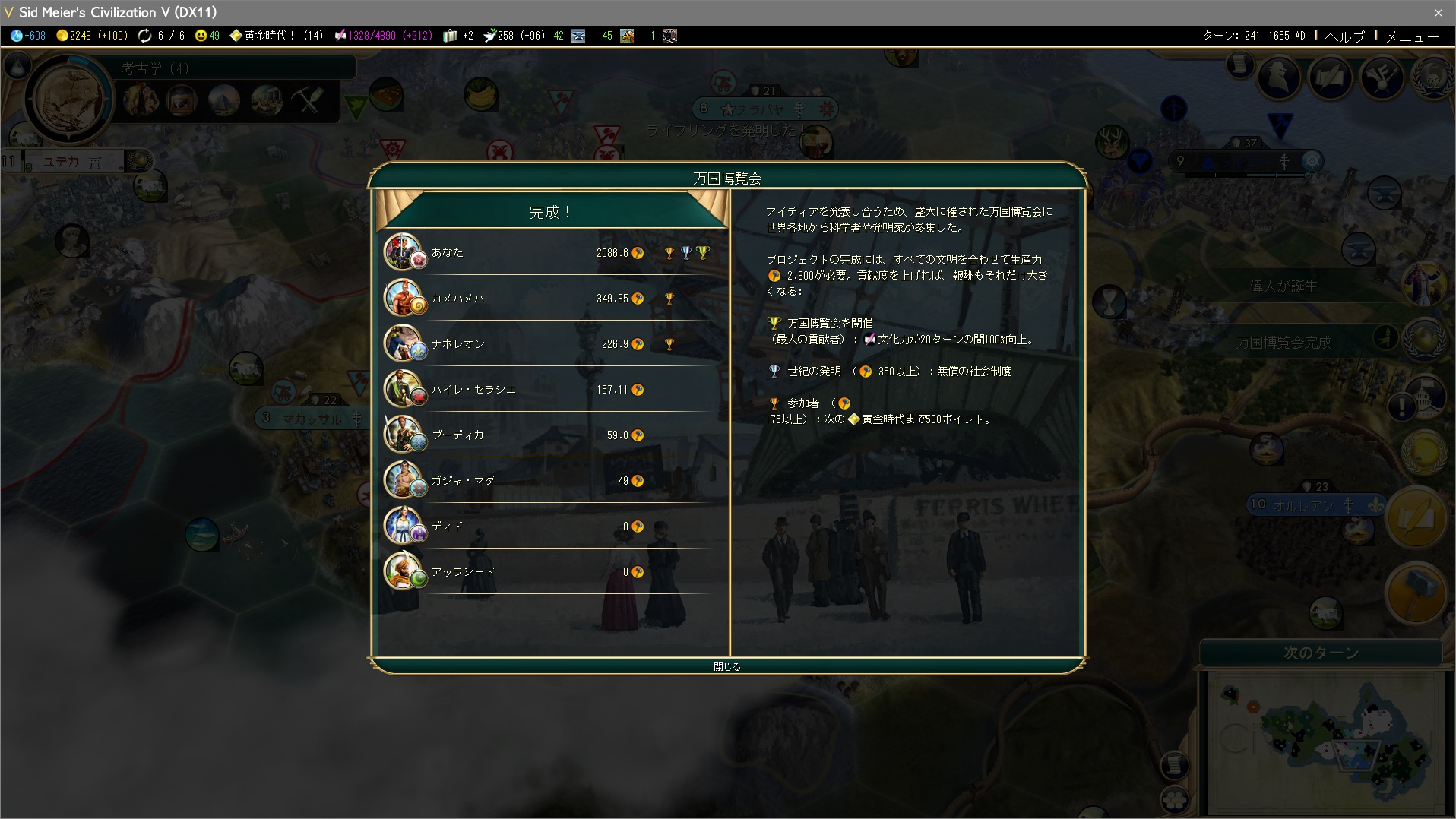 アレクサンドリア図書館、ピラミッド、万里の長城を獲得。ピラミッドは奪うもの!