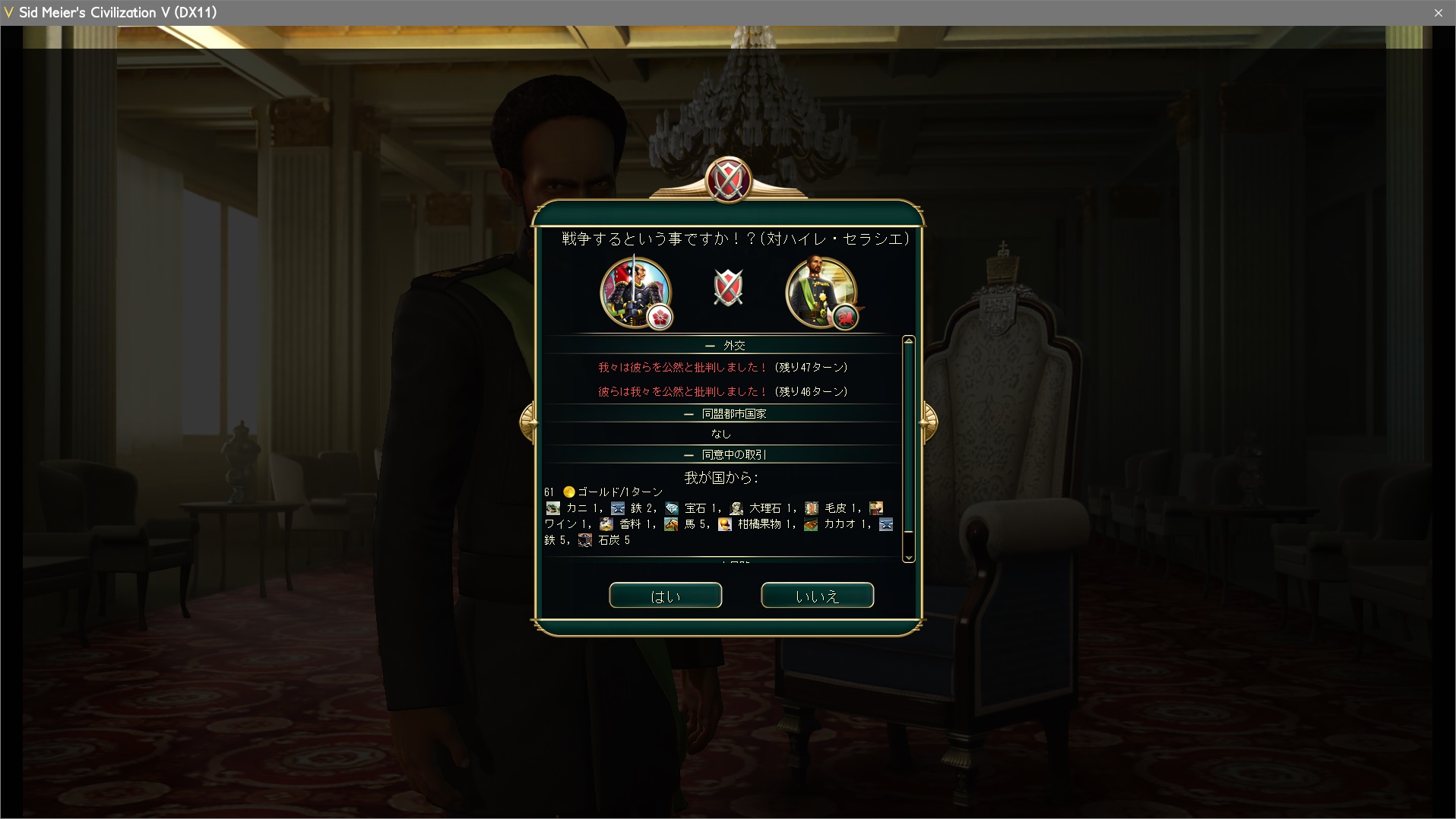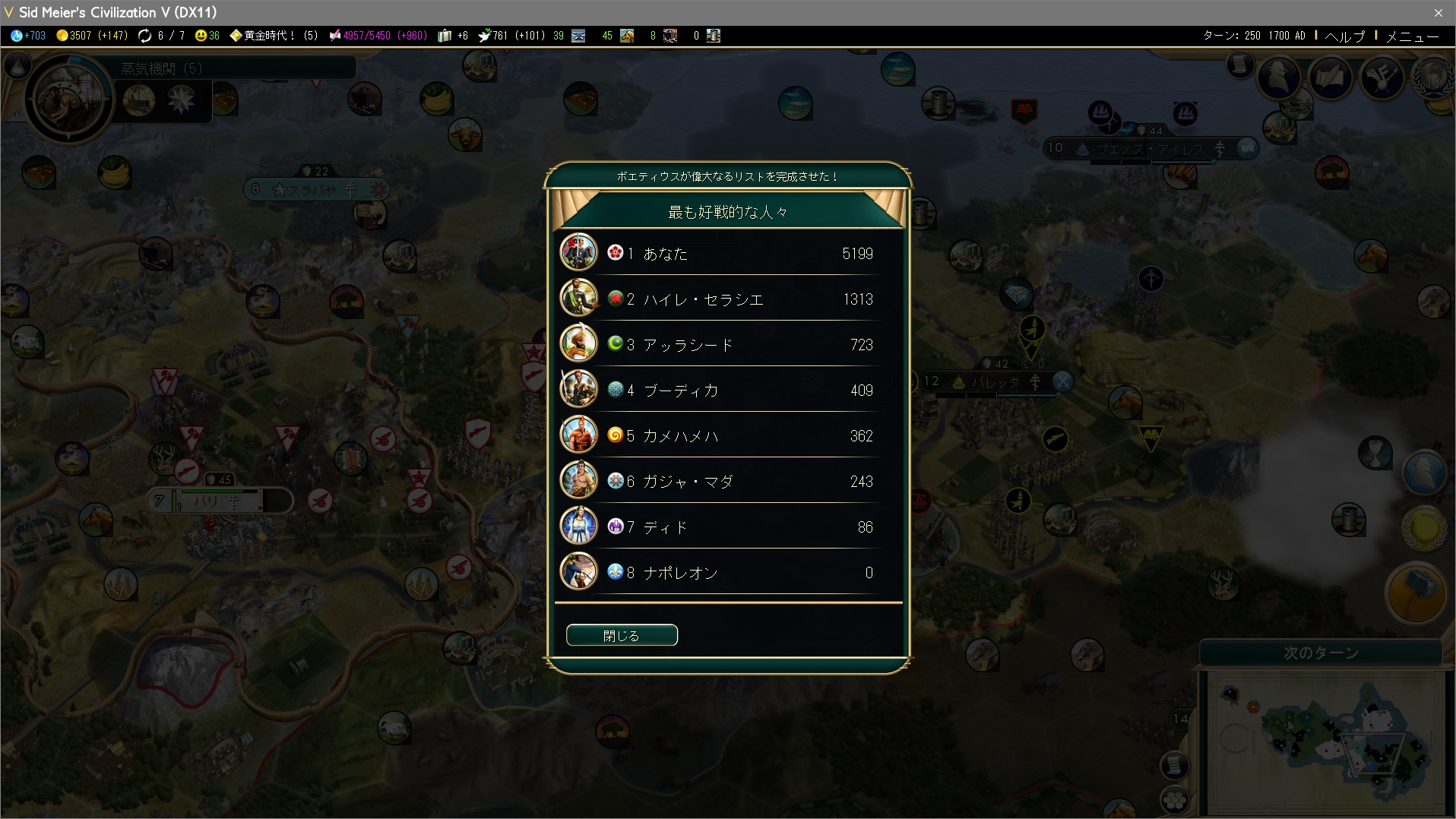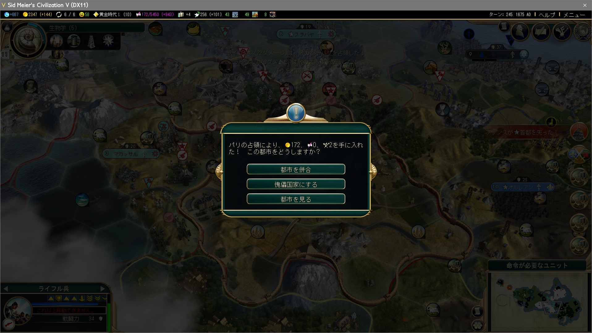 宣戦依頼が全文明に通った。こんなに好戦的なのになぜフランスを滅ぼそうとはしてくれないのだろう?