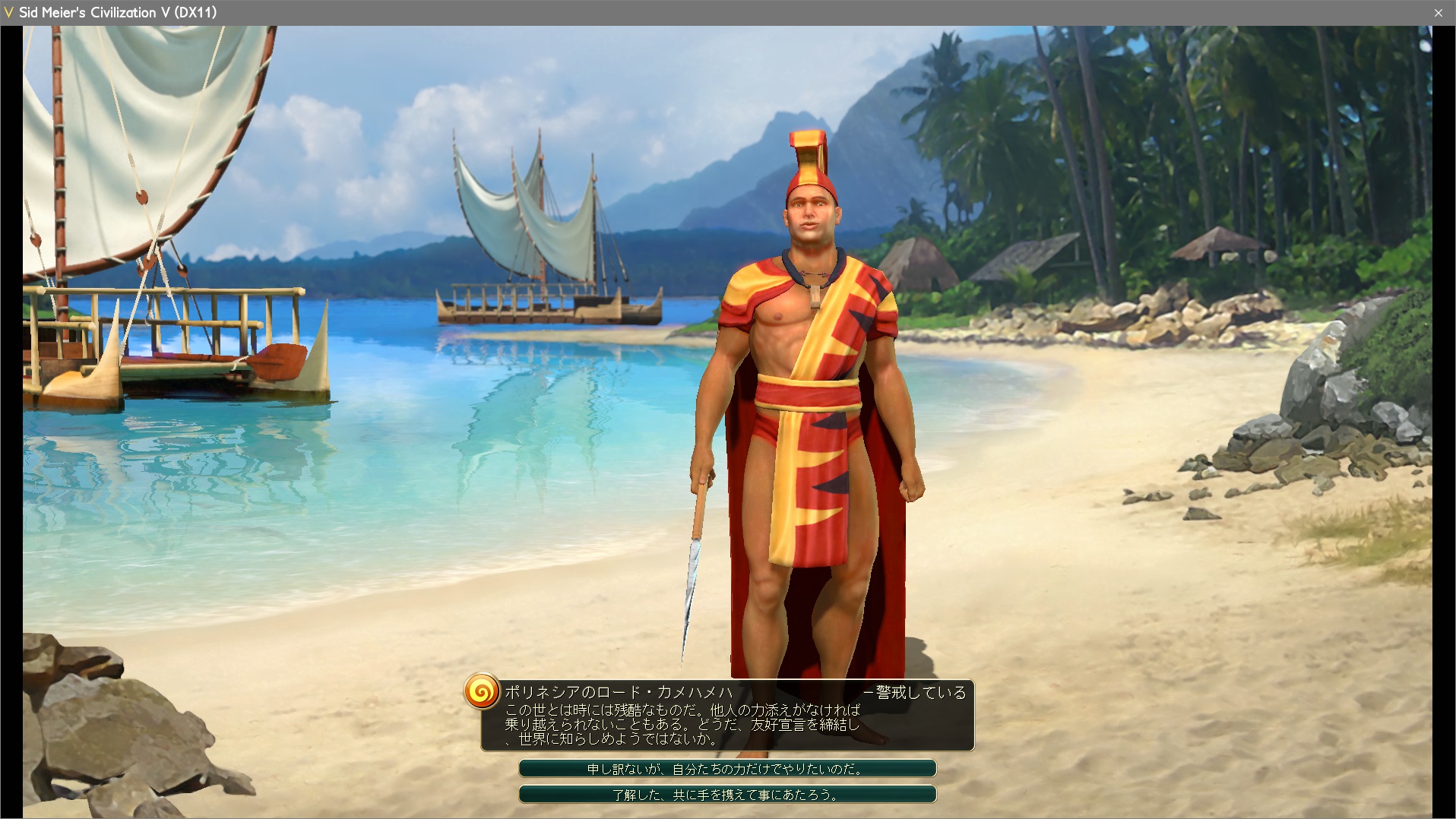 非難声明を出されていたポリネシアが態度を一転、友好宣言の申し入れ。ポリネシアは[DoFWillingness]友好宣言を結びやすいのパラがBなので、関係改善も容易だ。