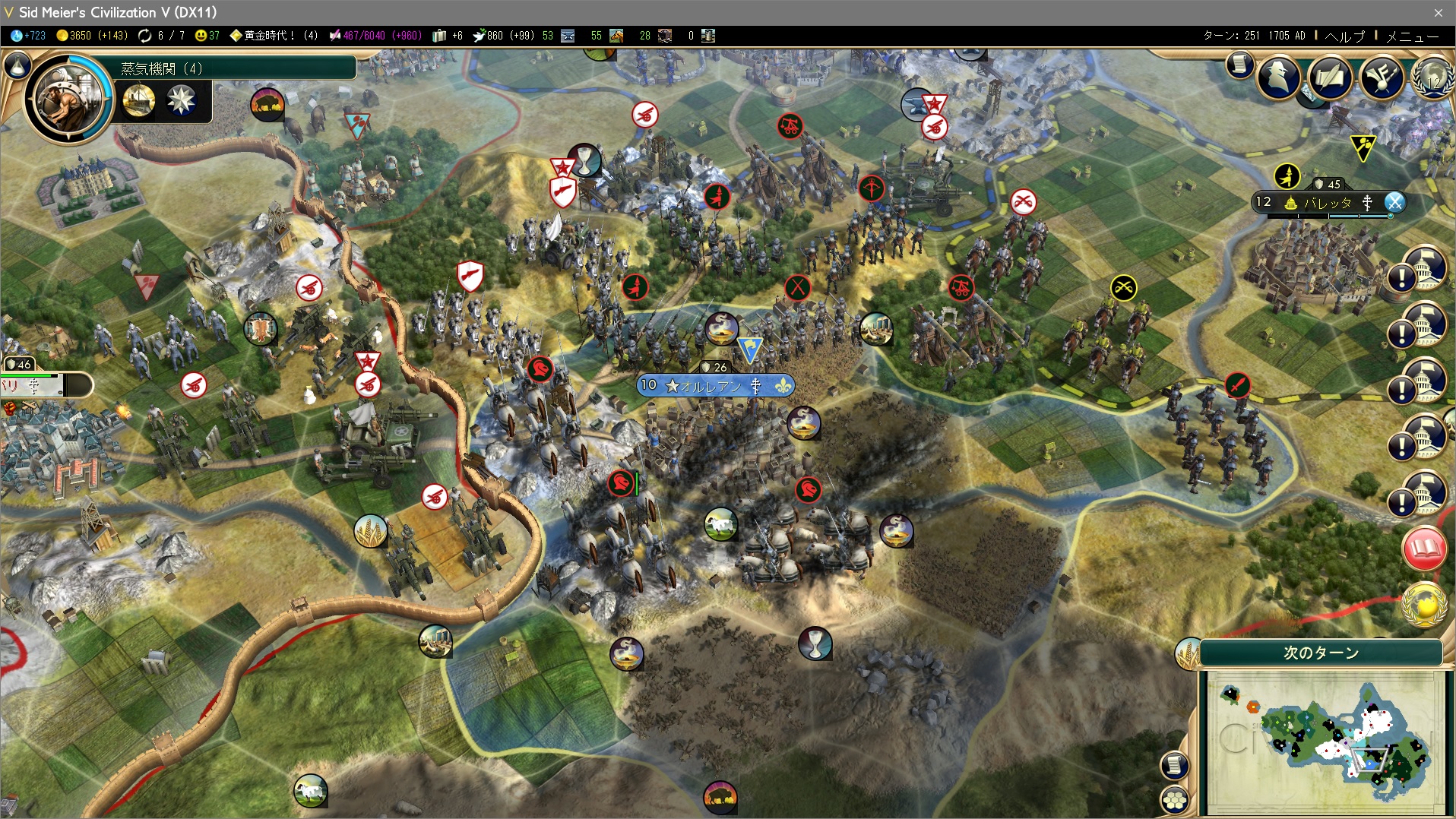 対フランス戦開始。フランスは制覇勝利にとって最大の敵、万里の長城もち。慎重に行こう。