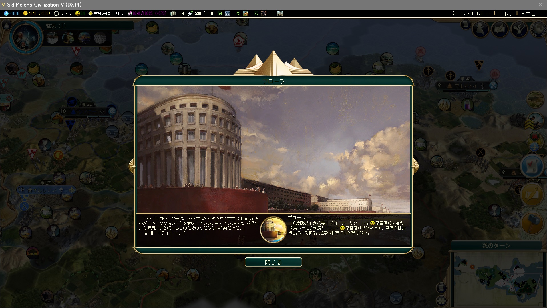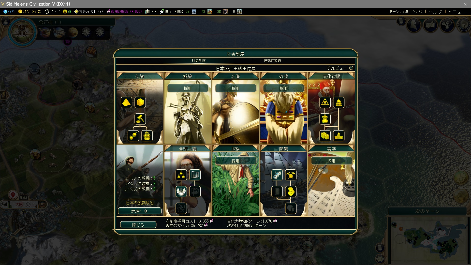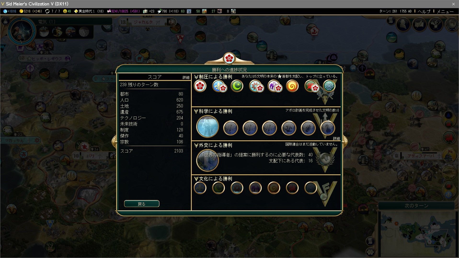 うっかり文化勝利しないよう、観光力が上がらないように社会制度を取らないとな…。記事のタイトルを今更難易度:皇子で文化勝利に差し替えるのはイヤだぞ。