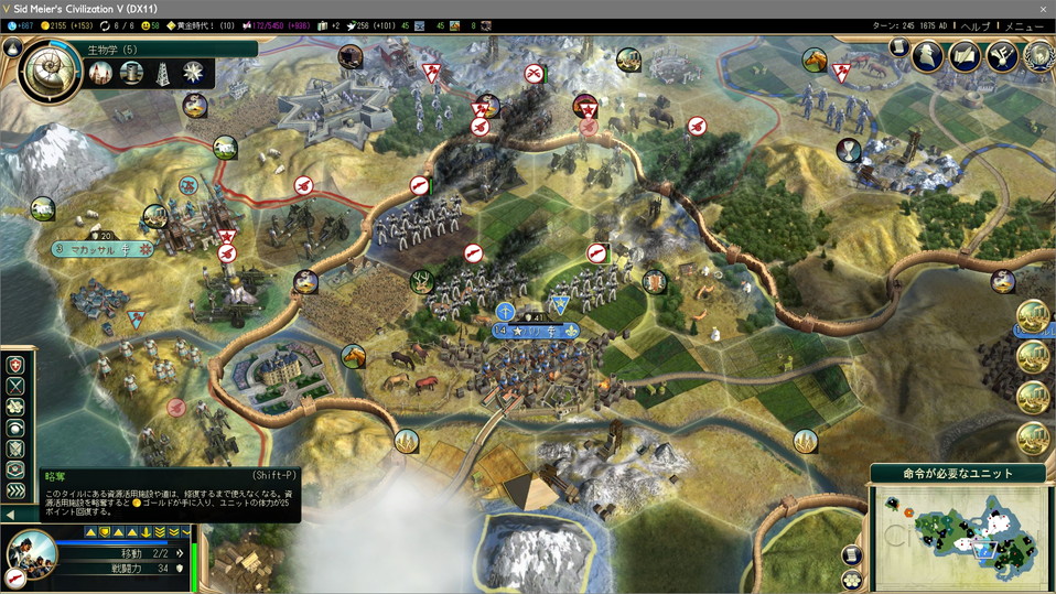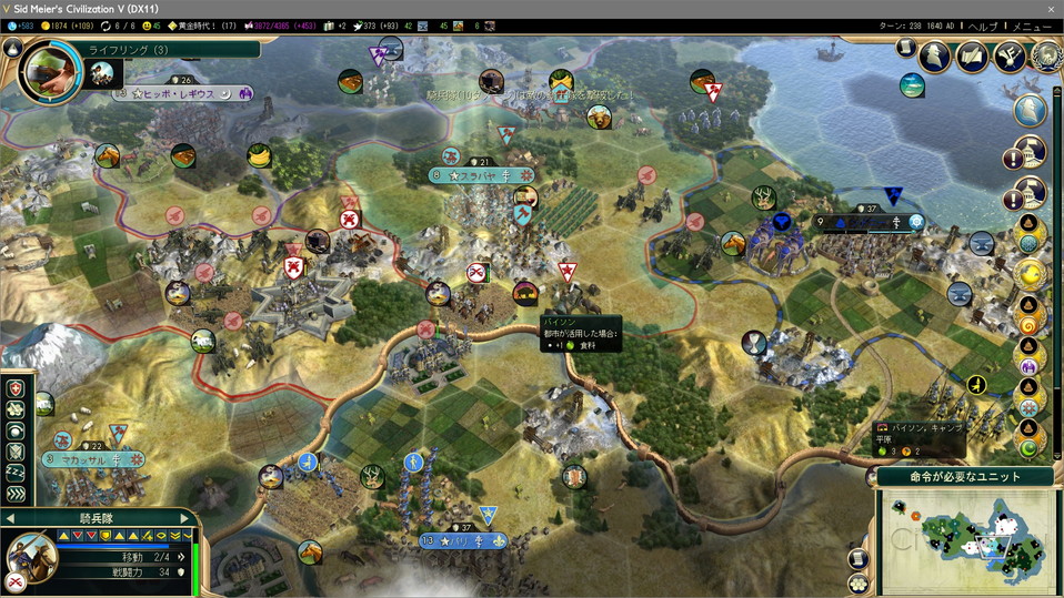 都市を再占領されてしまうと、占領役のユニットが殺されたり、度重なる占領による建造物の破壊とろくなことがない。人口24の都市を占領すると人口12の都市を得られるわけだが、占領→奪還→再占領で人口3まで減ってしまう。これは勿体無い。