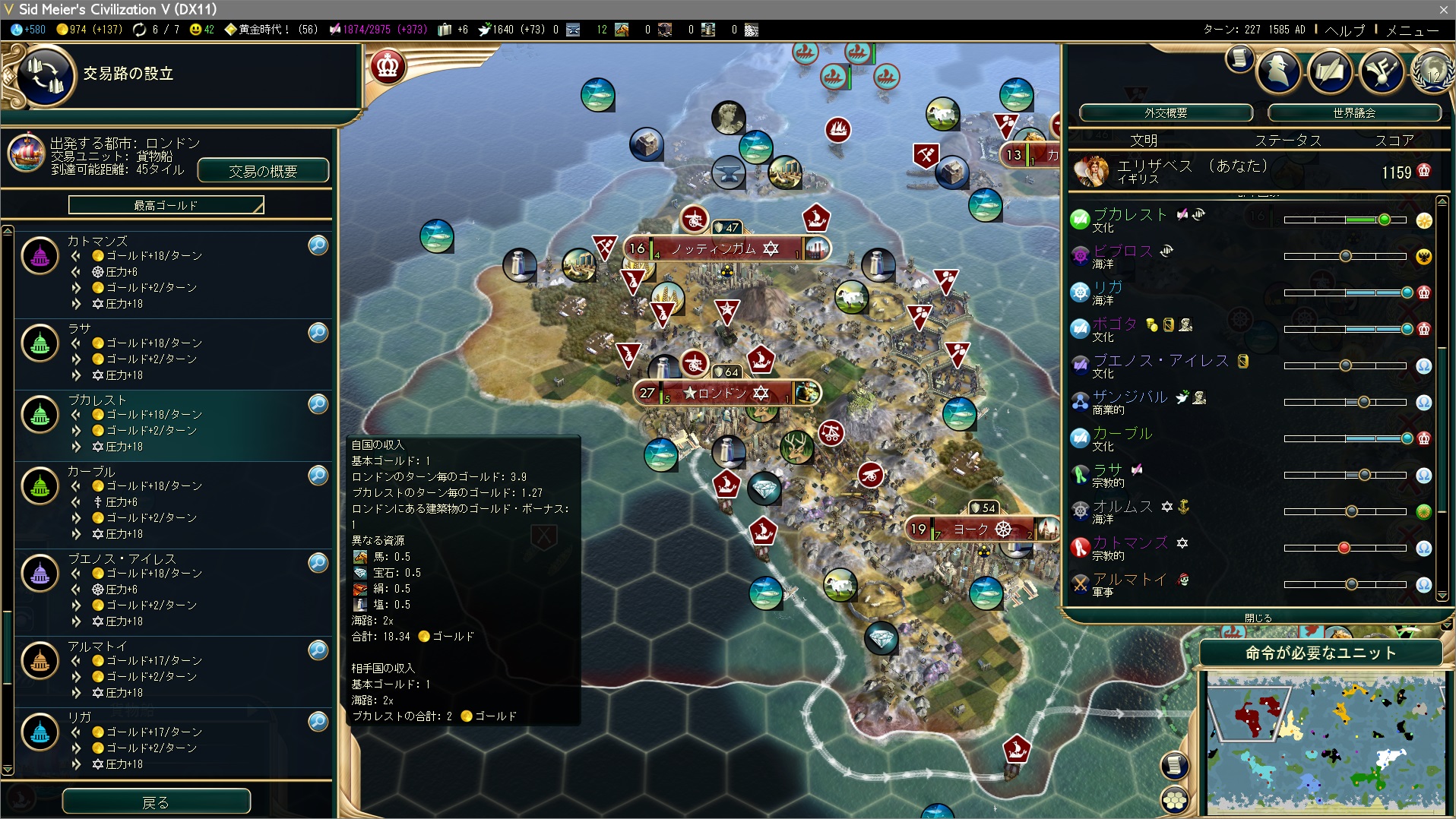 海外交易路は割りと自由なタイミングで引きなおせるので、焦って交易路クエを達成しようとせず、他のクエストと同時に達成することで長期間の同盟を狙うといいです。