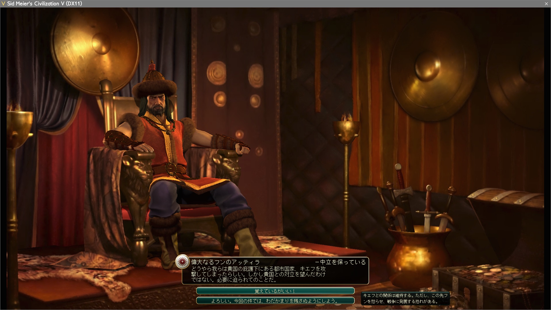 今度はフンが同盟都市国家に貢ぎ物。もちろんフンとの関係を優先。うかつな防衛宣言には気をつけよう!(テッテッテー)