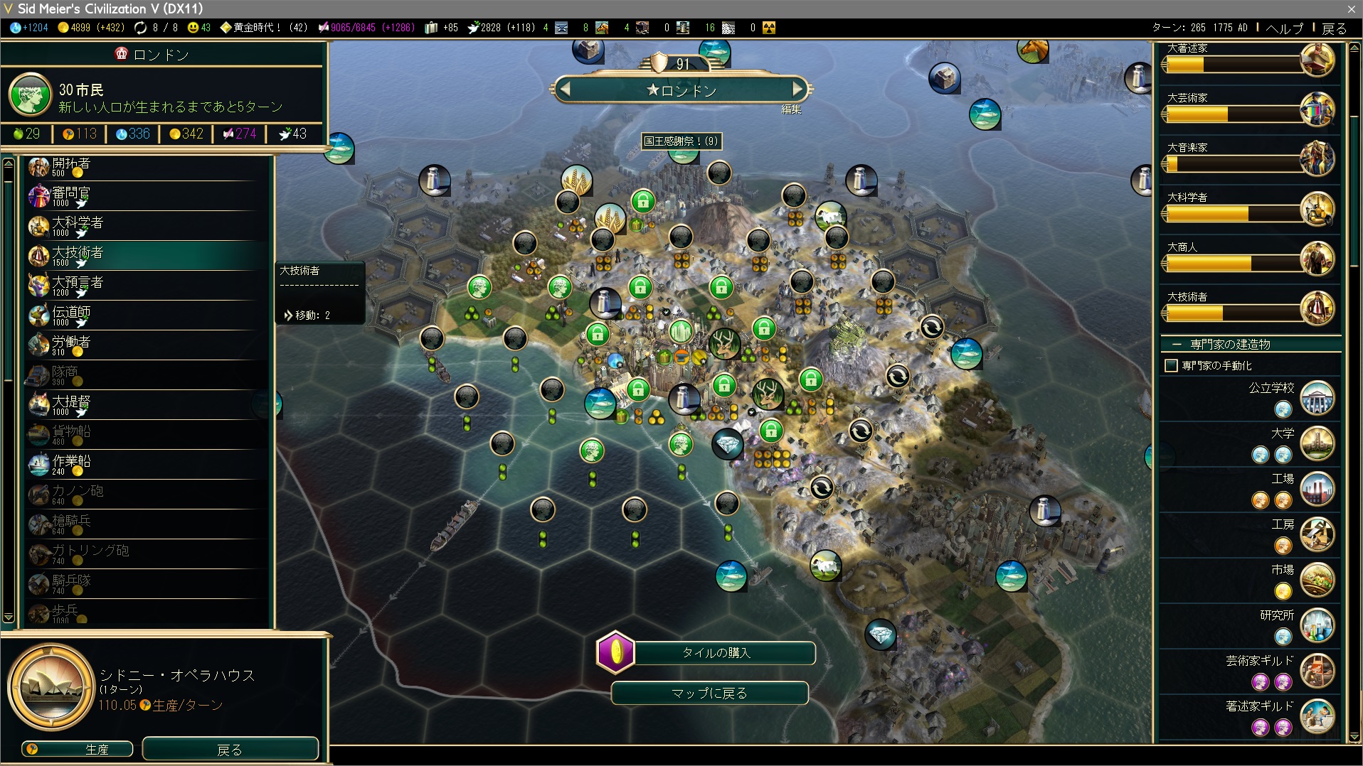 前作Civ4では死に物狂いで誕生させていた大技術者。恥ずかしながらリロードなんかもしていましたよ。それがこんなに簡単に手に入るなんて、まるで文明の進歩みたいだぁ…