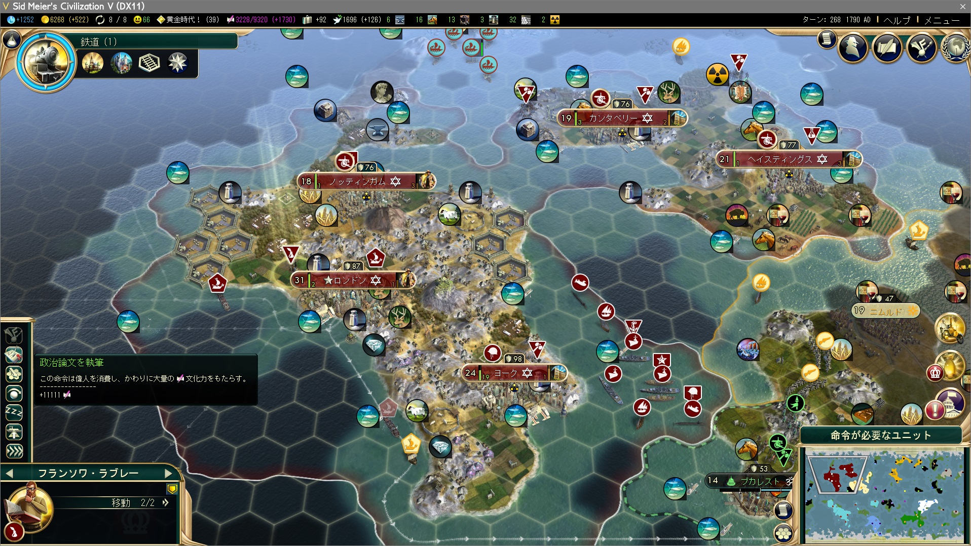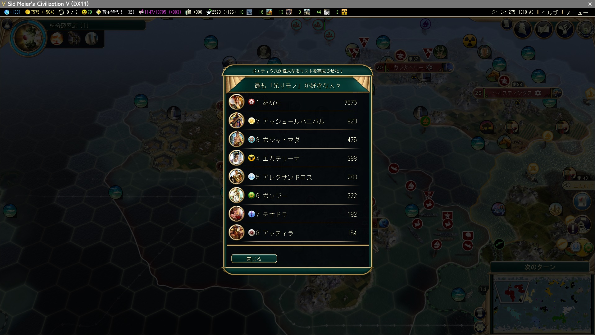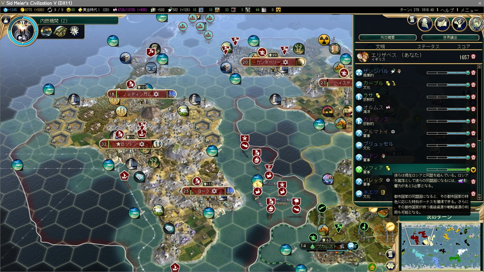+11111はなかなかの数字。こんな感じで文化力を稼いでいれば、ポーランド以外でも高難易度で戦えます。