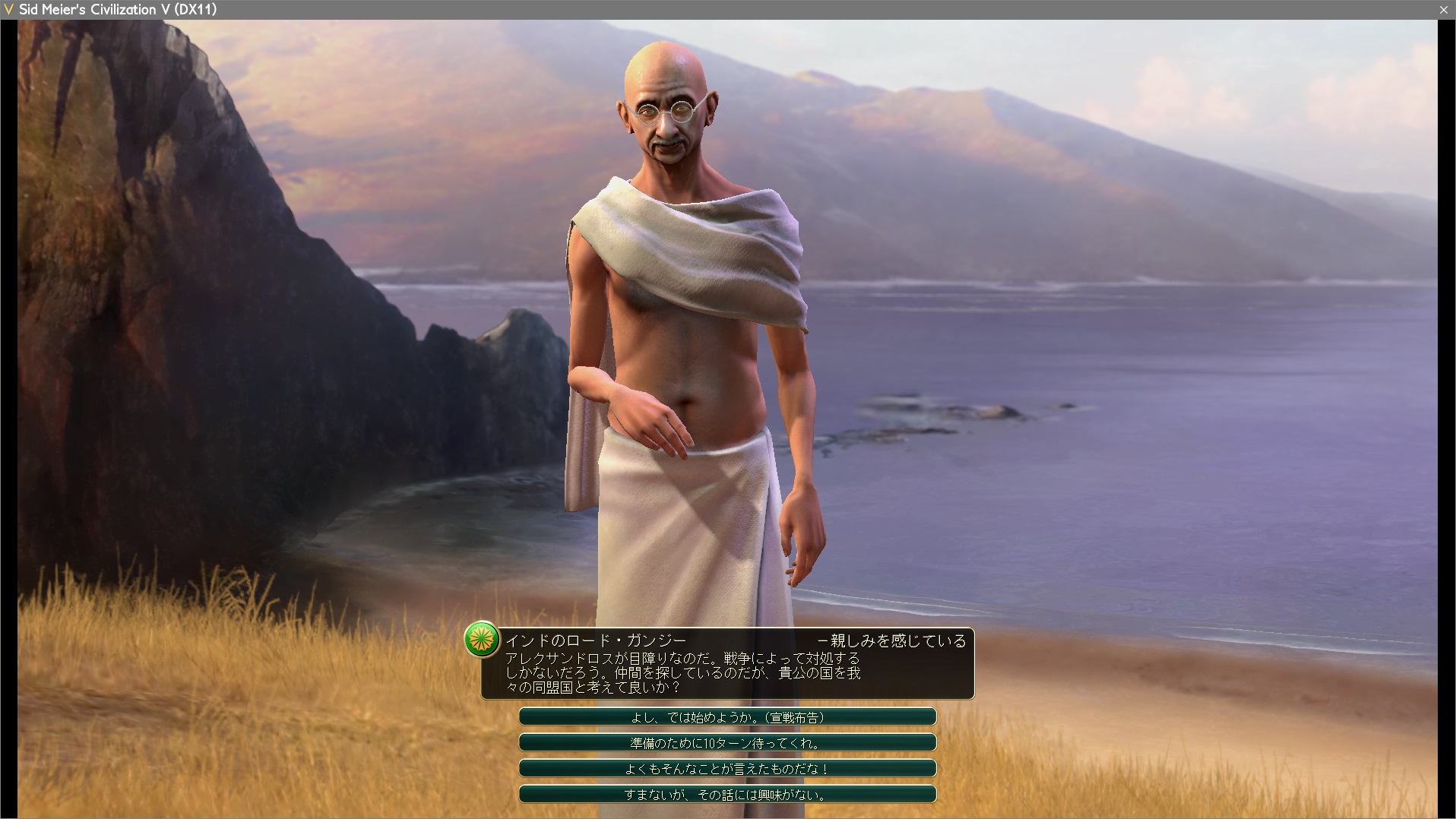 インドからアッシリアへの共同戦線依頼。まあ断ってもデメリットないし私は上手く活用できる方なのですが、これ何回目よ?ガンジーしつこすぎじゃね?