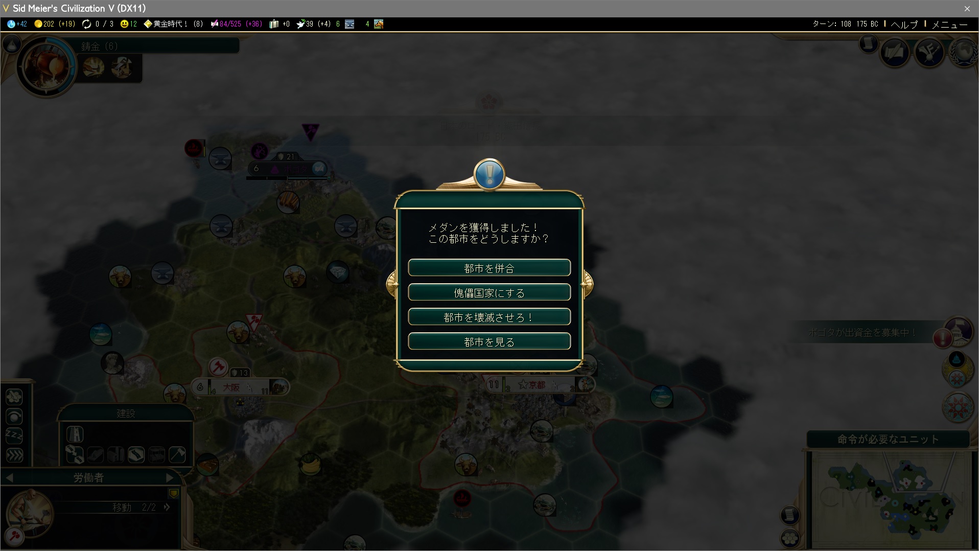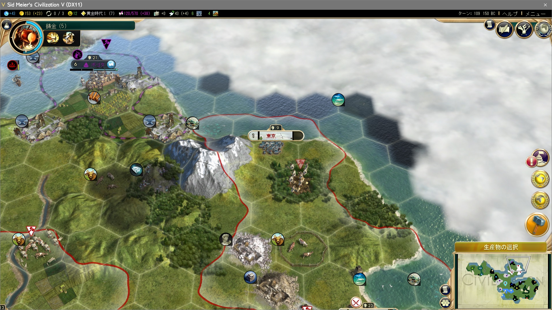 ターン109、第三都市東京を建設。こんなに遅くても問題ないんだぞ。いや流石に遅すぎだが。
