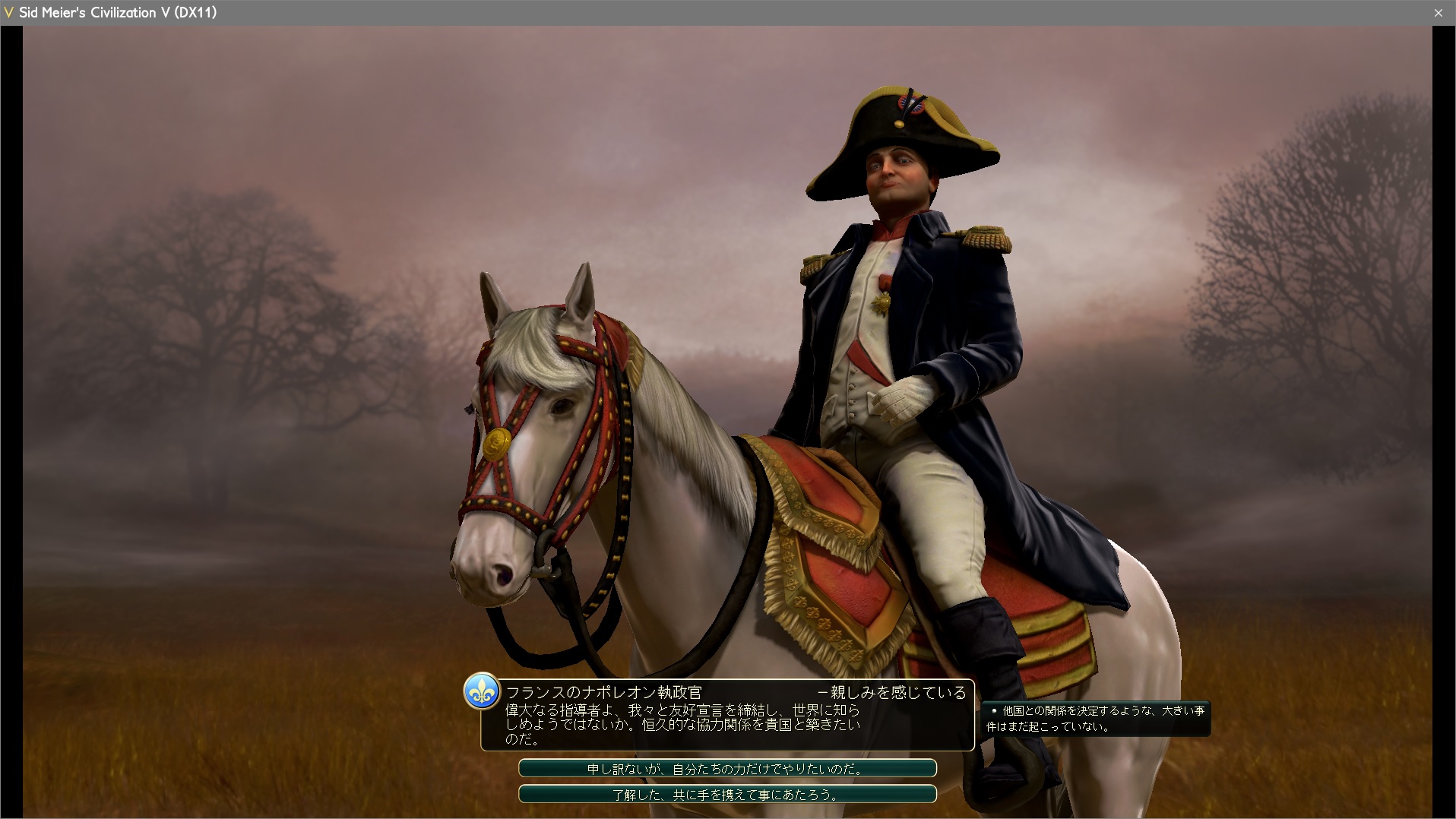 フランスが友好宣言を持ちかけてきた。しかし友好度を稼いだわけでもないのにフランスのような好戦的な文明が友好宣言とは…?