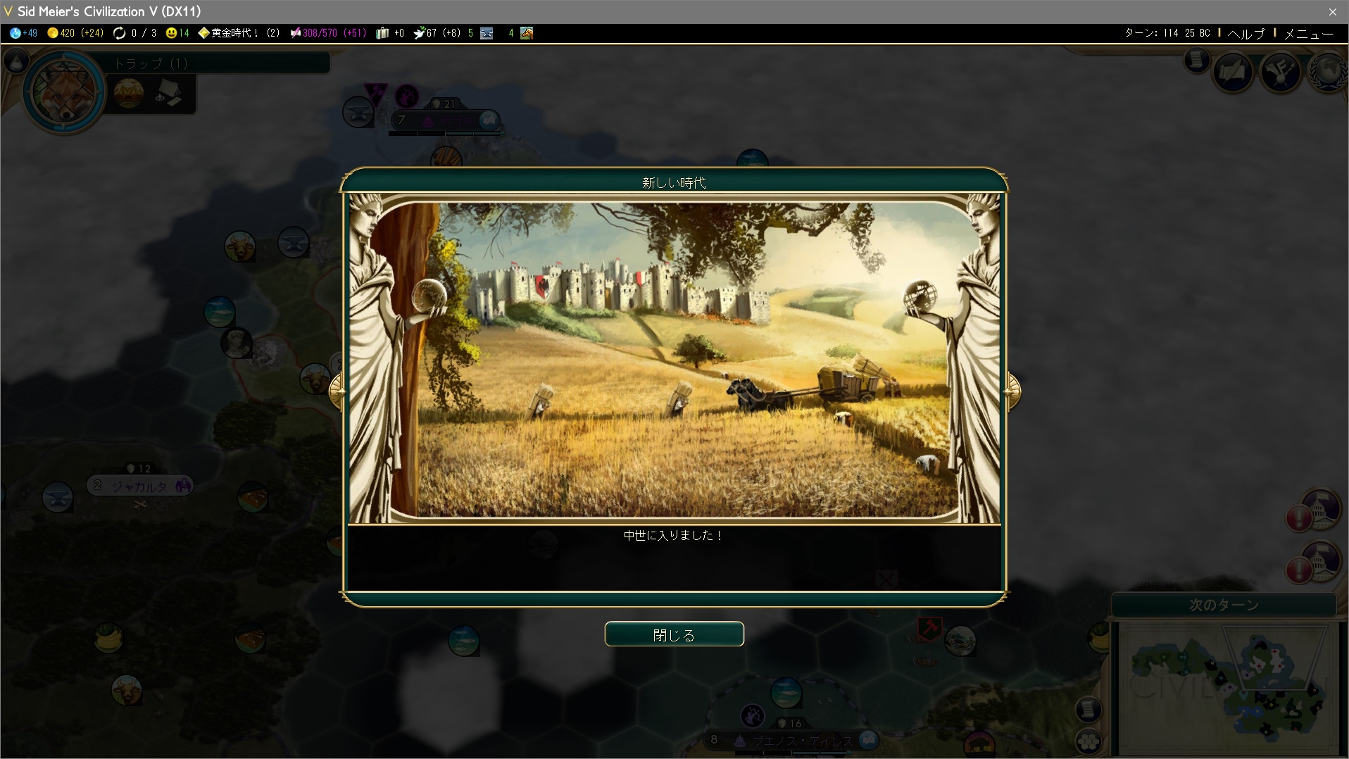 ターン114、鋳金の研究完了と同時に中世入り。キリの良いところでまた見てギアス次回!