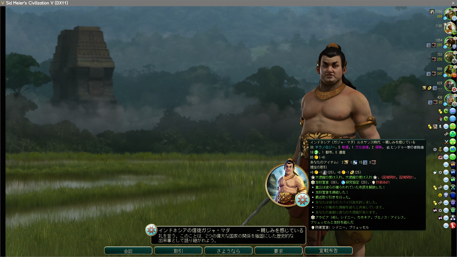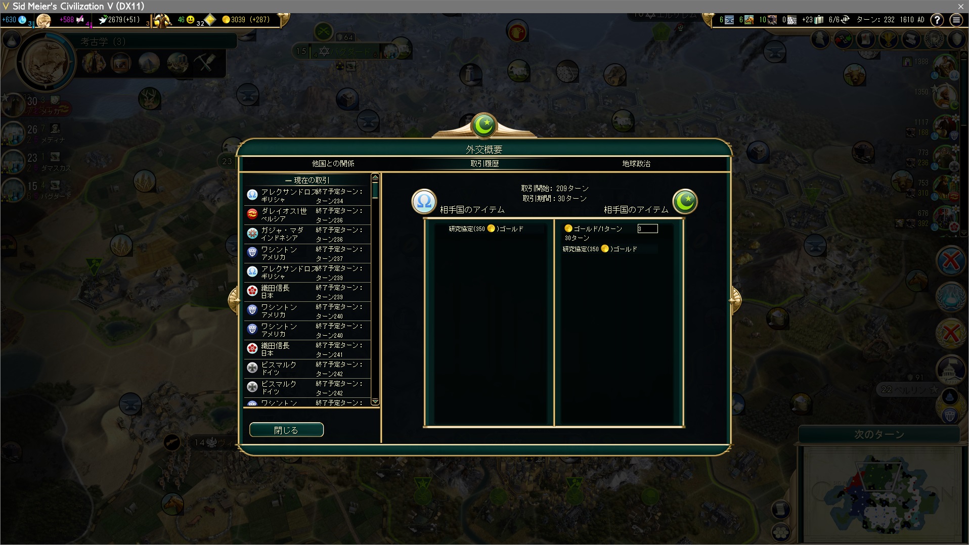 科学勝利には研究協定の数が多ければ多いほどいい。今回のような情熱大陸ではなく平和主義者だらけのシド星であれば、研究協定の数が増え勝利ターンが短縮できます。