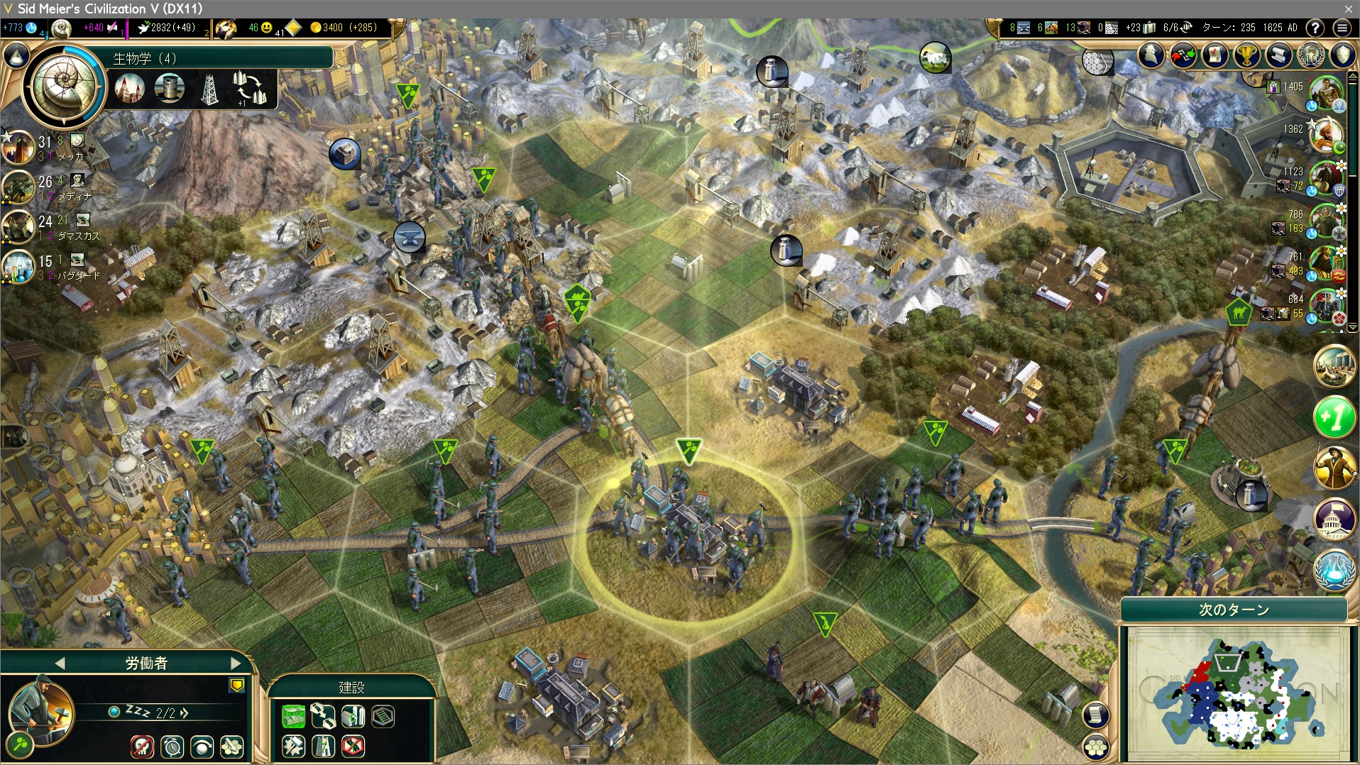 勝利ターンの短縮だけを考えて大技術者を一切出さなければ、大科学者を10体以上ストックしておくことも可能です。大科学者の数がこれだけ多いと、どのタイミングで使えばいいのかがよくわからないのでは?