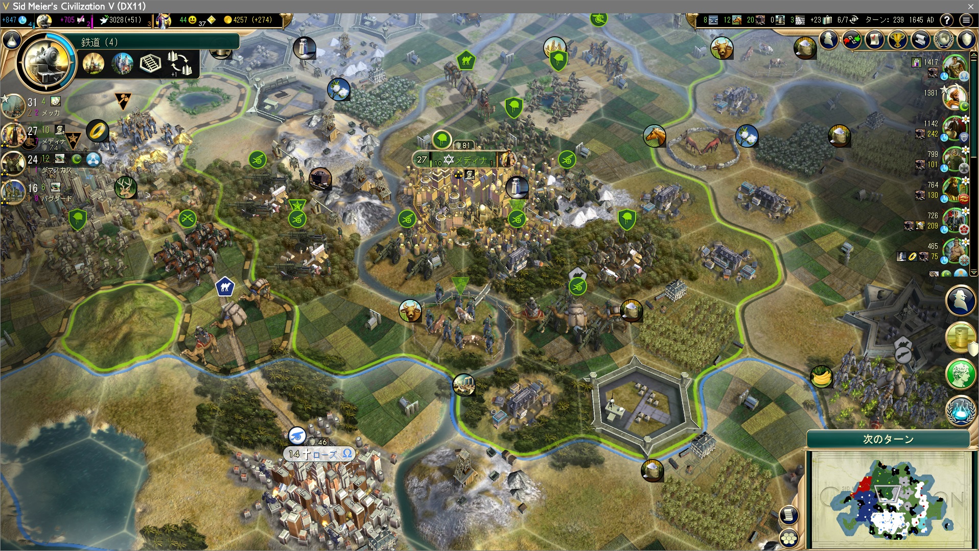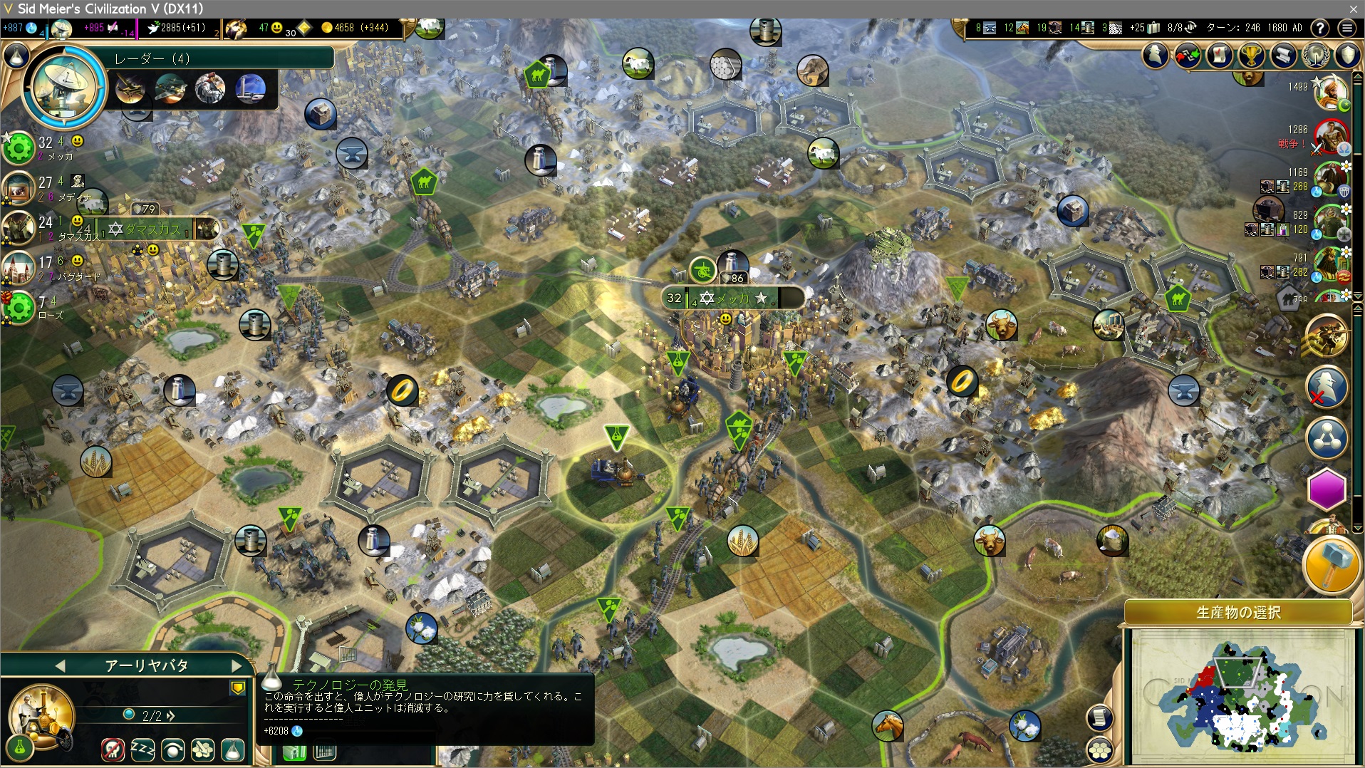 やはり美学に浮気したのがまずかったか。もちろん文化勝利狙いであれば美学OKだが、今思えばギリシャと遭遇した時点で科学勝利一本で考えるべきだったんだろう。