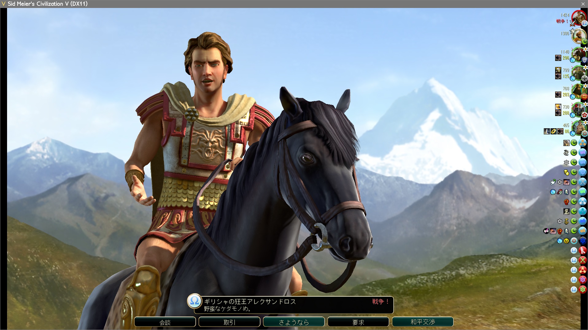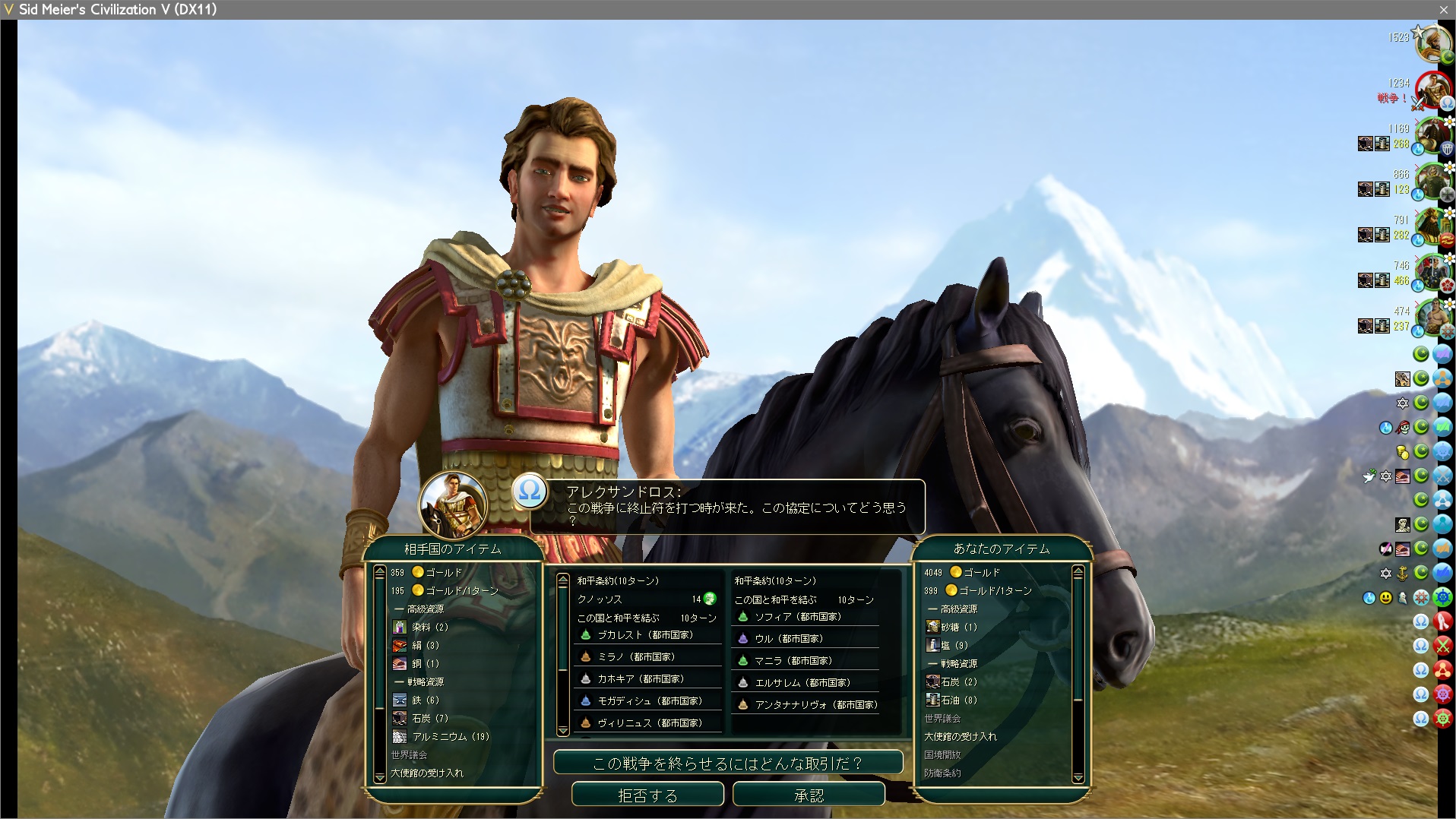 ギリシャから一度目の和平交渉。もう都市がテーブルに出てきたか、ということは軍事力もそんなにないらしい。軍事力に余裕があれば都市なんて差し出そうとしないはずだからだ。