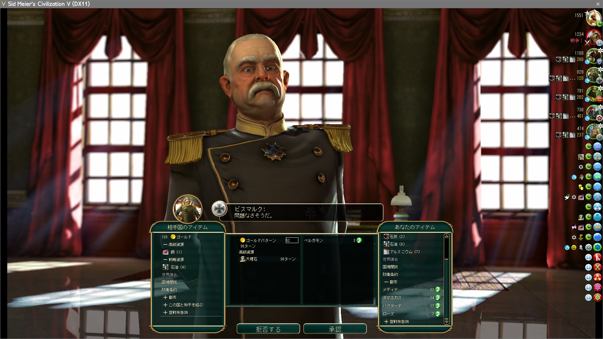 ギリシャの最後の飛び地都市を攻撃中。ドイツと国境を接しているので高値で売れる。しかしアラビアはアルミニウムが不足ぎみだ、売るかキープするかどうしようか?
