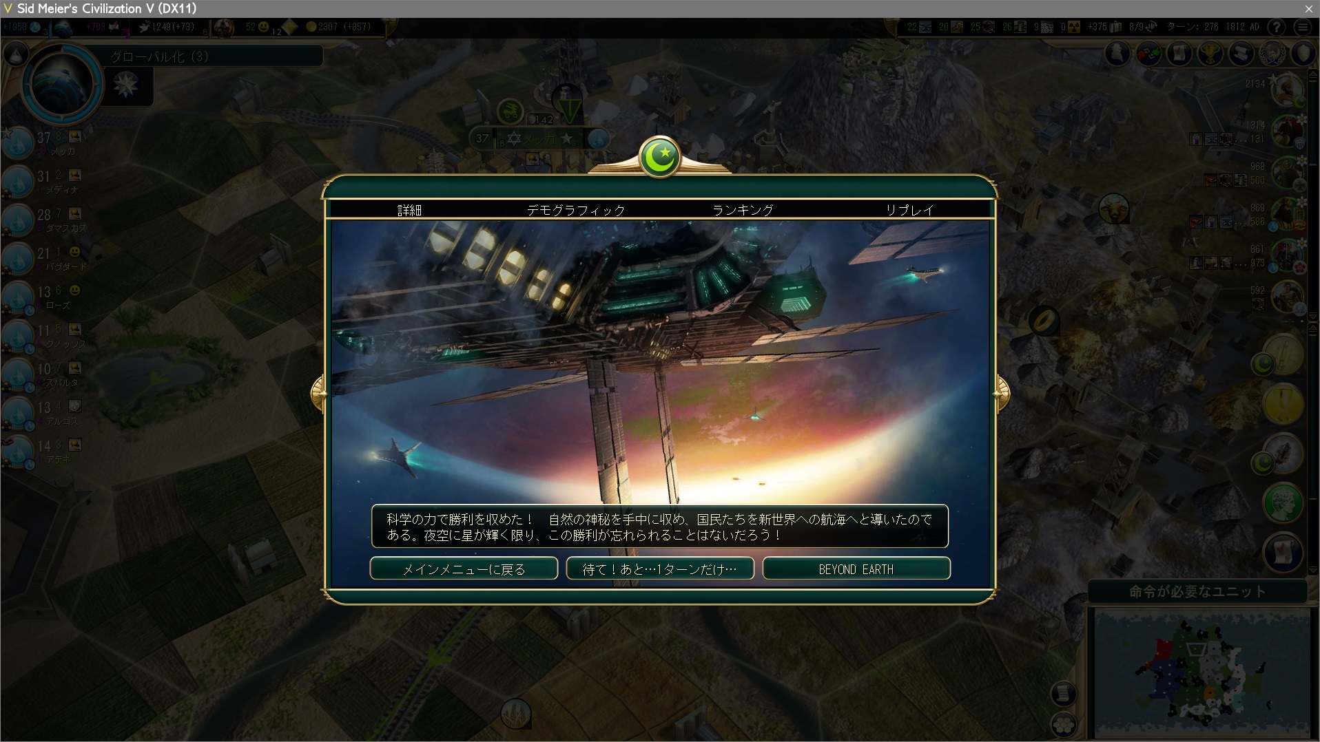 ターン276、科学勝利!