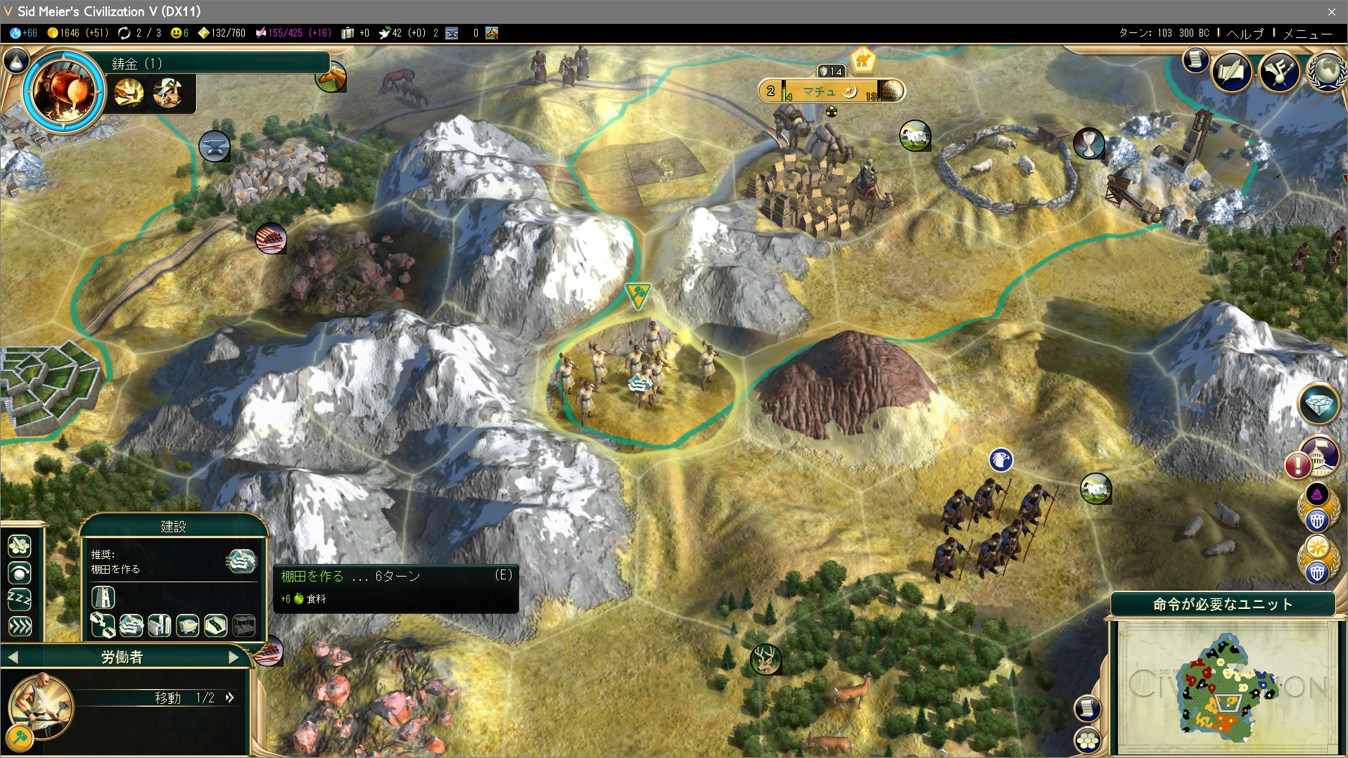 首都で建造物が建つまでは、地方都市で軍事ユニットや考古学者を生産。科学施設は一斉に建てたいので首都でゴールド購入、そのためにはゴールドが必要でゴールドは戦争で稼げる。どうよこの方程式!