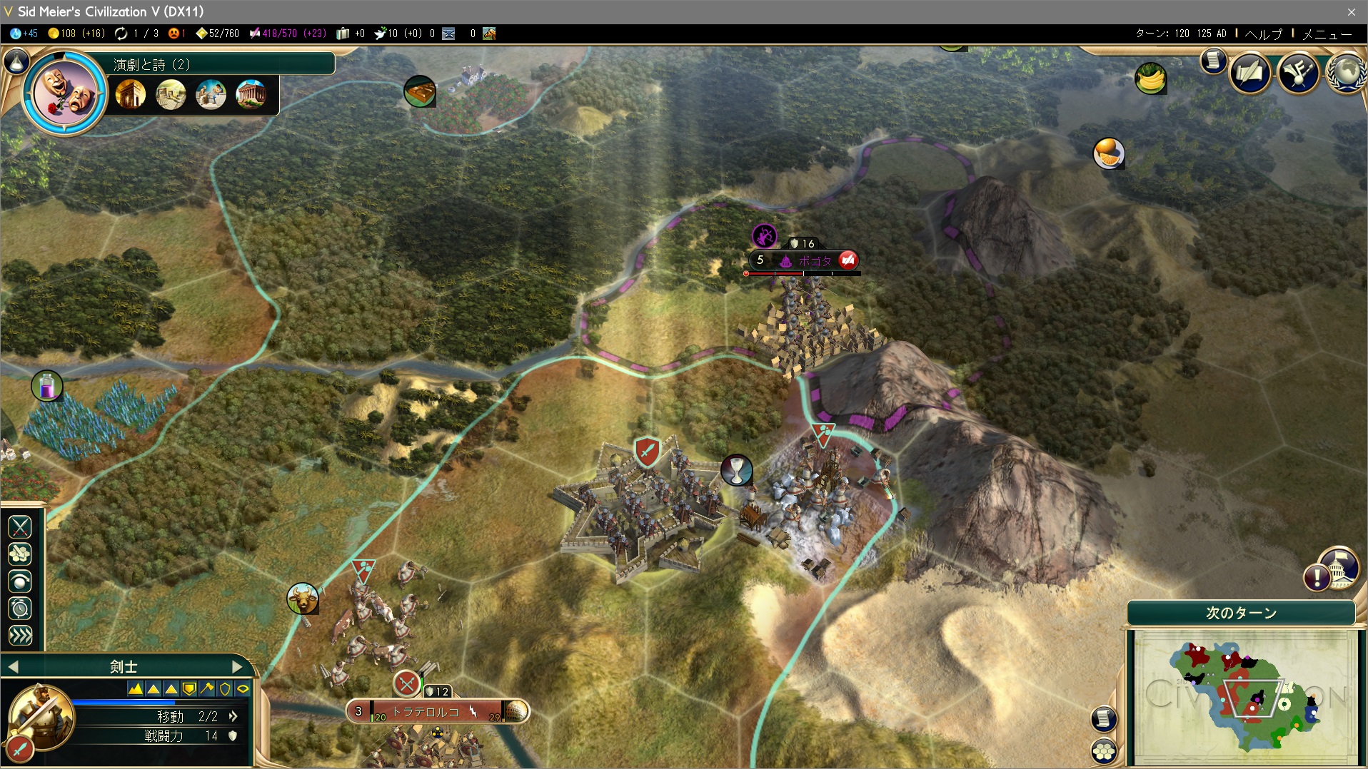 城塞により都市国家の高級資源を奪っている。都市国家に宣戦布告する際には資源が奪える位置にあるかを確認しておくのも重要だ。