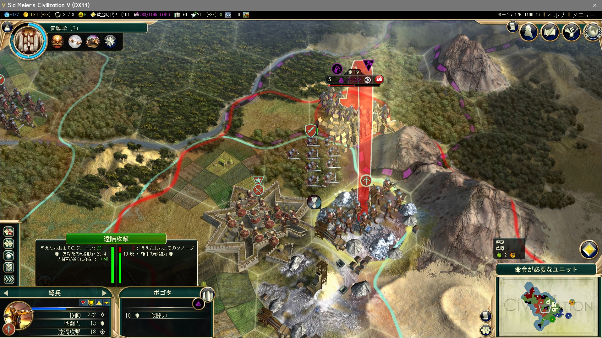 しかしそれでは都市の砲撃&都市タイルのユニットの遠隔攻撃で大ダメージ→逃げる→数ターンかけて回復と効率が悪い。それを解決してくれるのが大将軍の城塞なんだ。